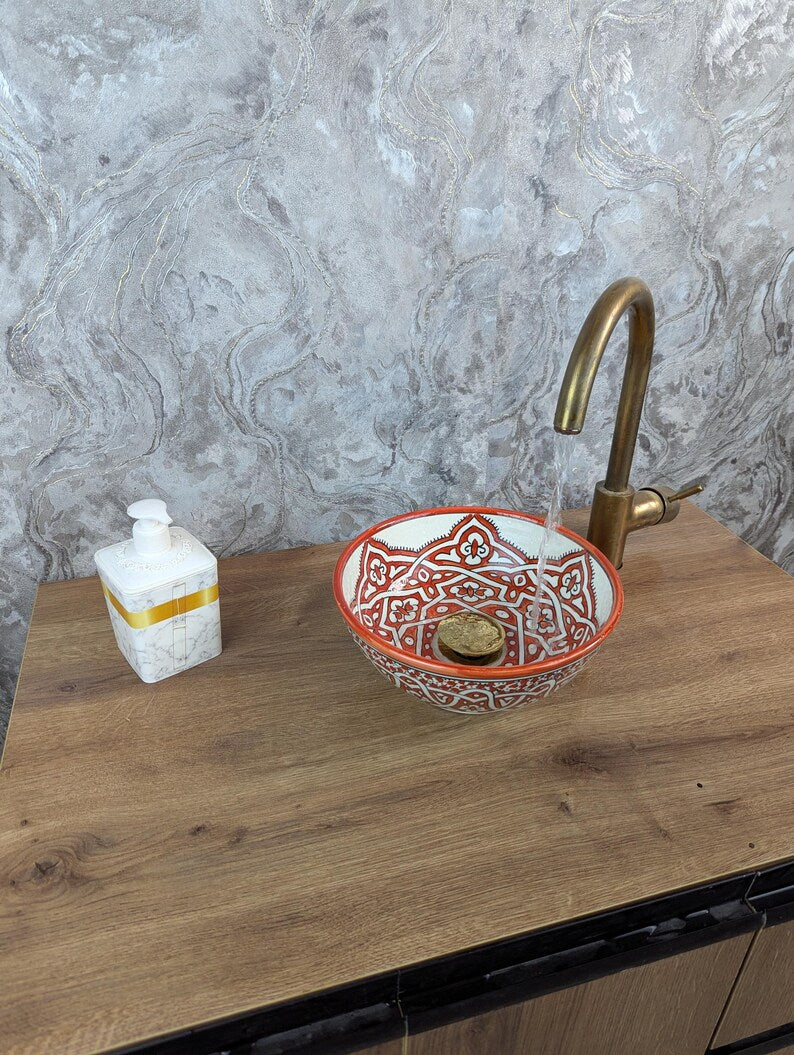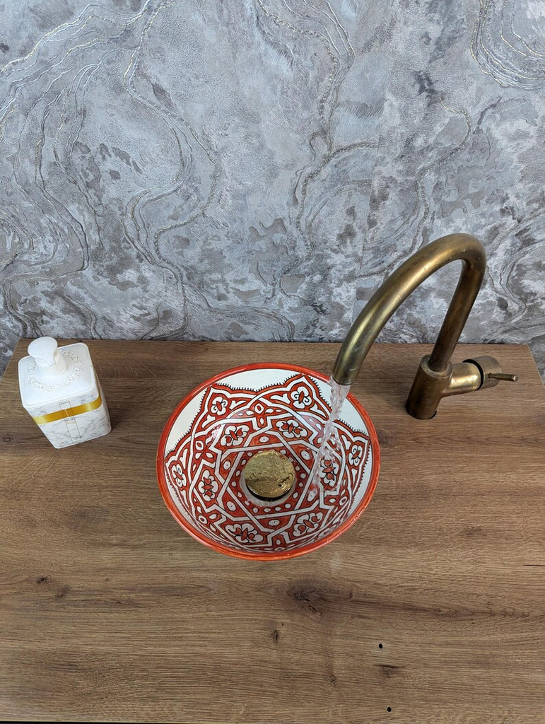 Handmade Moroccan Ceramic Sink: Elegant Bathroom Vessel Basin