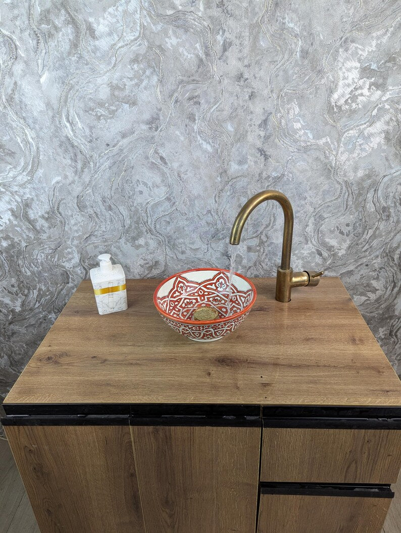 Crafted from high-quality ceramic, our Moroccan sink not only enhances your space aesthetically but also offers durability and practicality. Its smooth surface is easy to clean and maintain, ensuring long-lasting beauty and functionality.