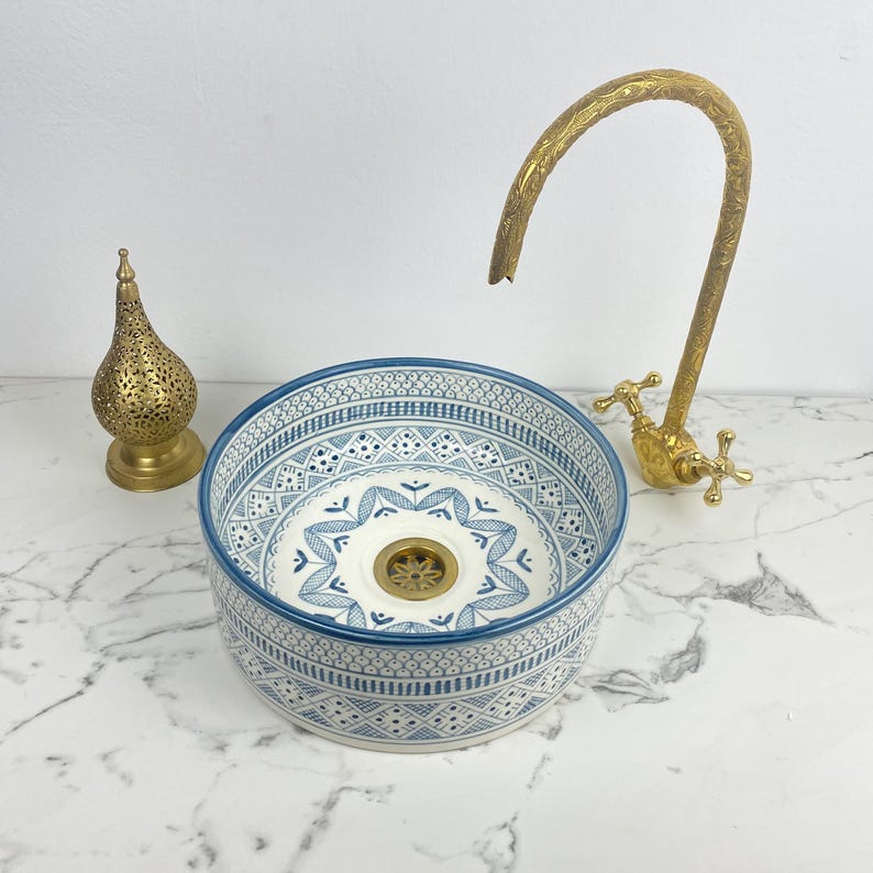 Introduce timeless style to your space with our handcrafted Moroccan ceramic sink. Whether placed as a striking countertop basin or set into your vanity, this elegant piece brings a harmonious mix of tradition and modern design to your bathroom.