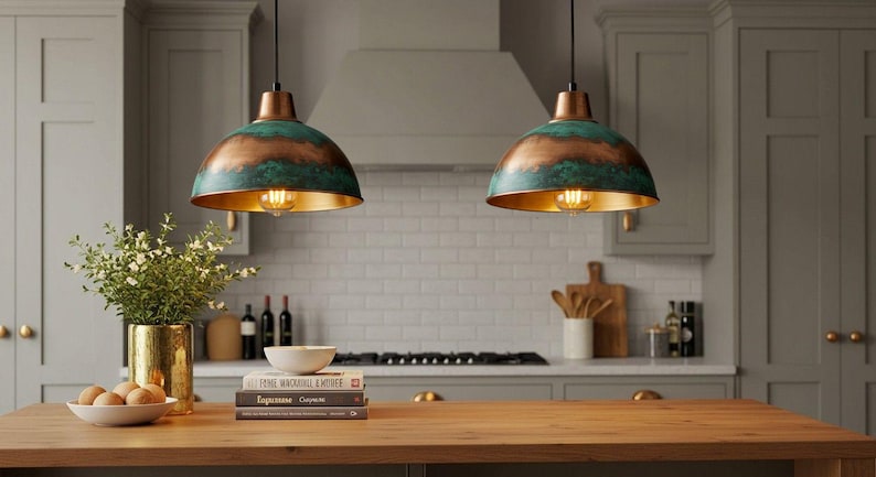 Handmade Moroccan Copper Pendant Light: Green Patina Dome Lamp