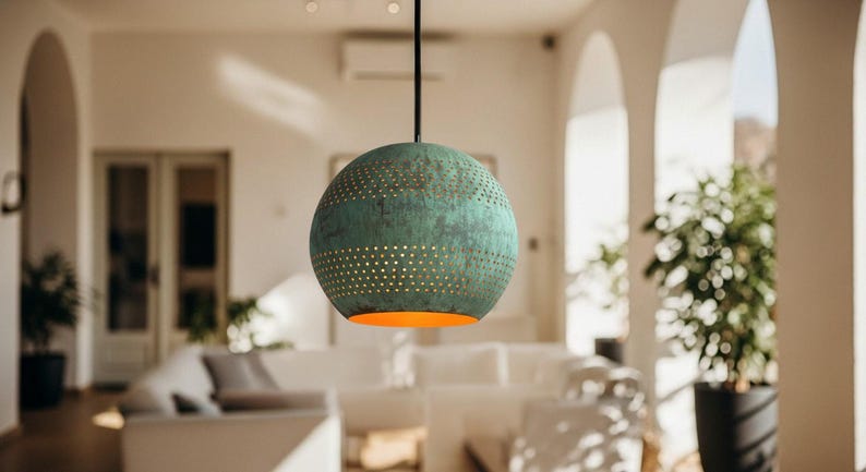 This ceiling lamp is hand-hammered by skilled artisans in Morocco using high-quality copper or brass. Its intricate perforated design creates mesmerizing shadow patterns on your walls and ceiling when lit, turning any room into a warm and inviting haven.
