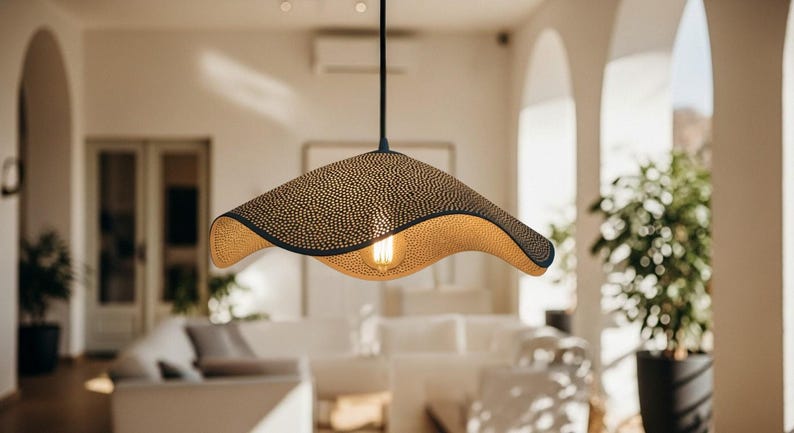 This ceiling lamp is hand-hammered by skilled artisans in Morocco using high-quality copper or brass. Its intricate perforated design creates mesmerizing shadow patterns on your walls and ceiling when lit, turning any room into a warm and inviting haven.