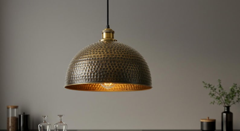 Handmade Moroccan Copper Pendant Light: Perforated Dome Lamp Shade