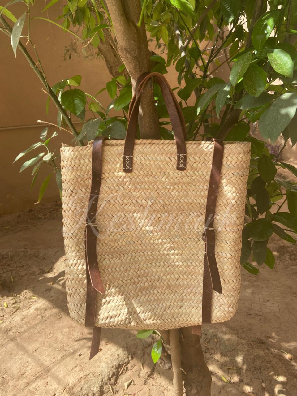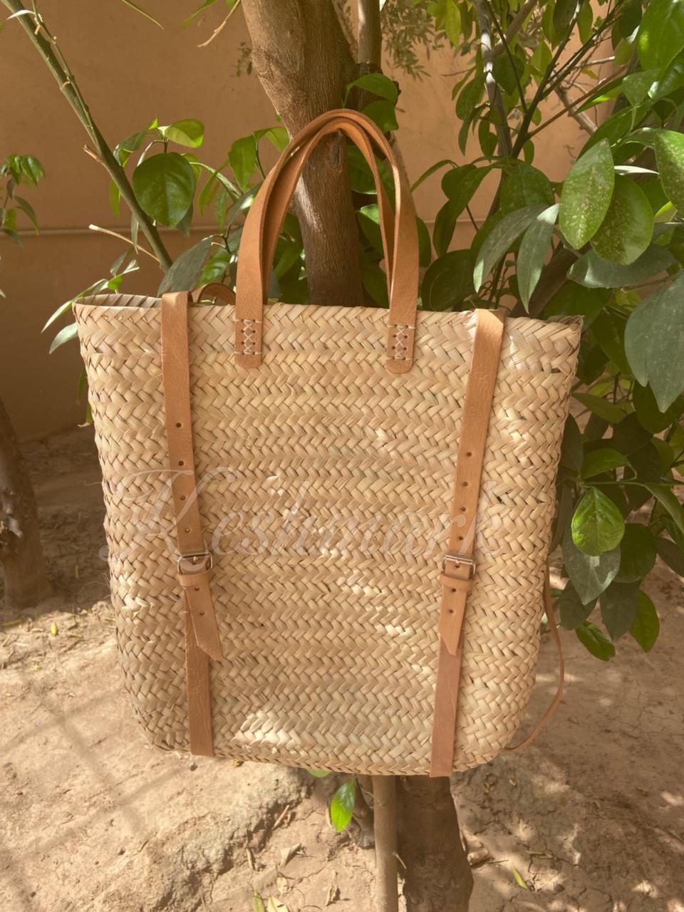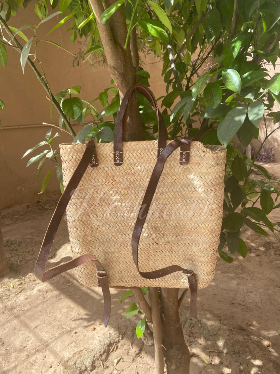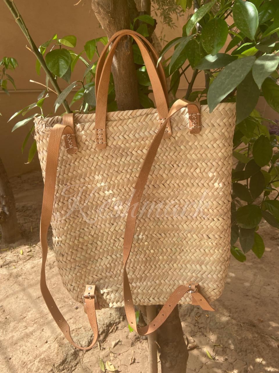 This beautiful woven backpack is handmade in the heart of Marrakech, Morocco, from natural palm leaves and durable genuine leather straps. Each piece is carefully hand-braided by local artisans, making it a unique and eco-friendly accessory perfect for everyday use.
