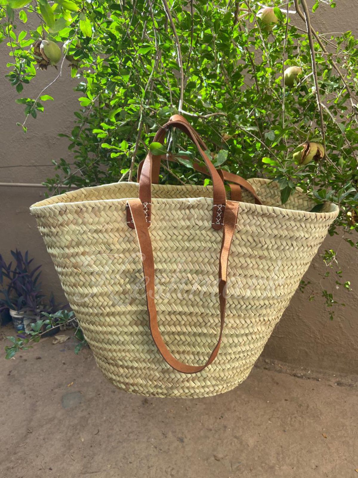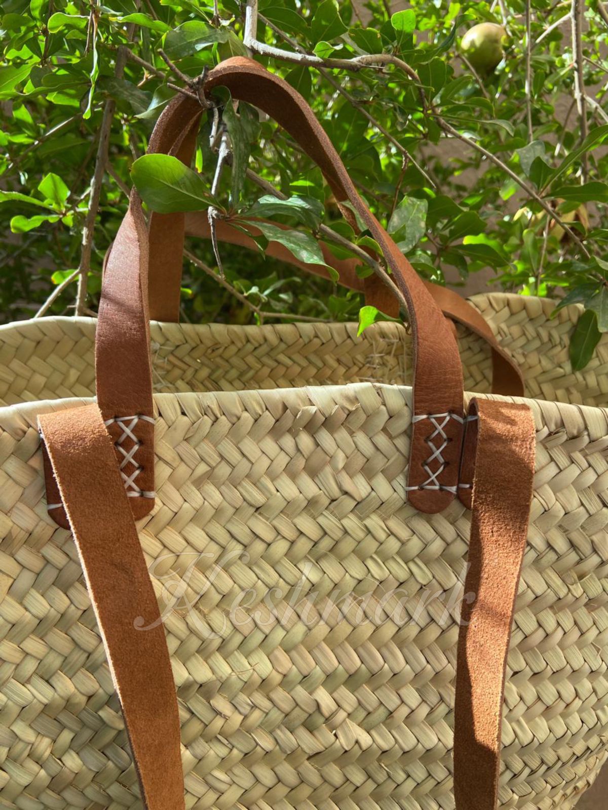 Moroccan Straw Tote β Handmade Palm Leaf Bag with Leather Straps β Eco-Friendly Summer Market Basket