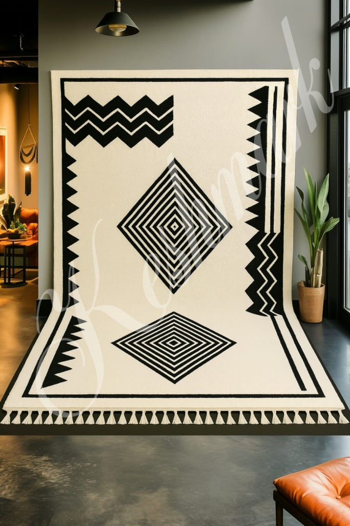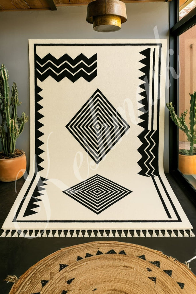 Perfect for living rooms, bedrooms, salons, offices, and minimalist interiors, it blends traditional Berber weaving techniques with contemporary design for a timeless, stylish look.
