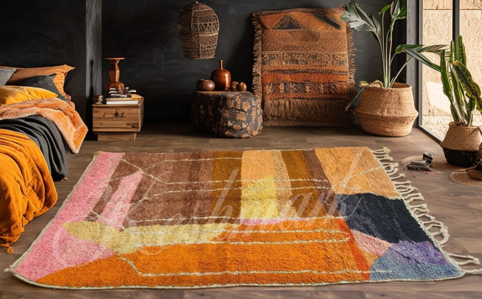 Handmade Moroccan Wool Rug – Colorful Abstract Berber Carpet with Modern Geometric Design, Boho Beni Ourain Style Area Rug for Contemporary Living Spaces (Copy)