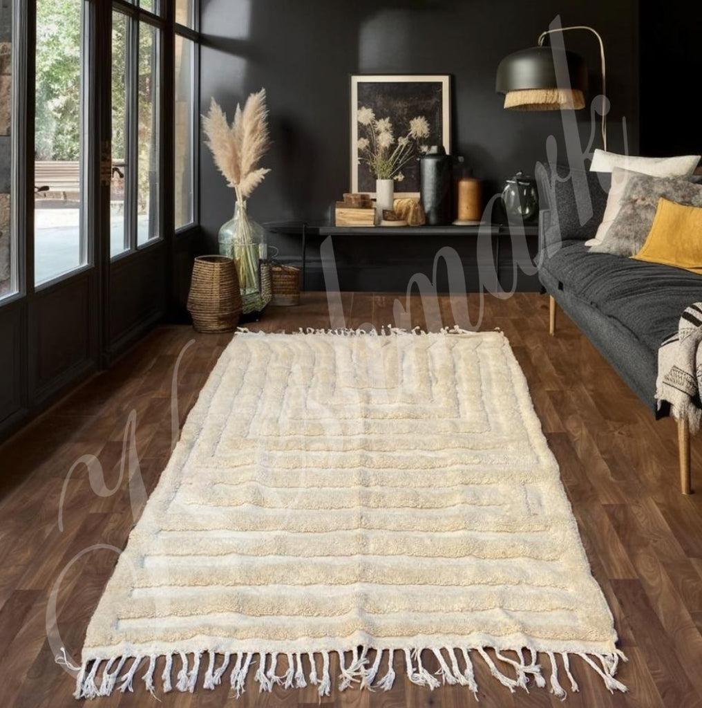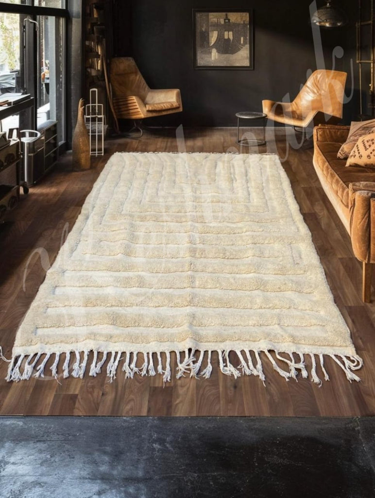 Elevate your space with this Handmade Moroccan Wool Rug, a refined blend of modern minimalism and traditional craftsmanship.