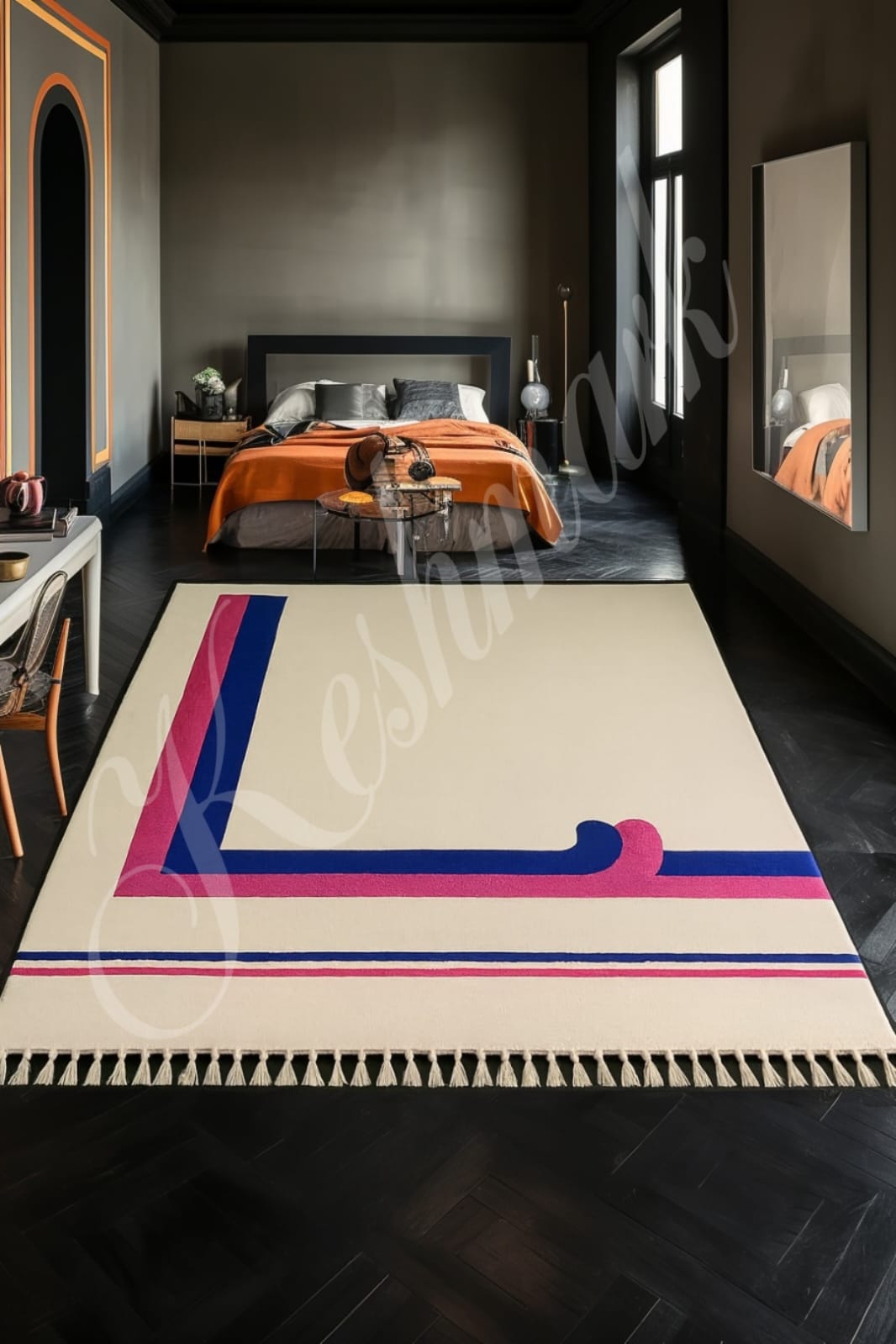 Thoughtfully handcrafted, it brings warmth, style, and artisan quality to living rooms, bedrooms, studios, and contemporary interiors. Its refined border details and subtle curved motifs make it an eye-catching centerpiece in any home.