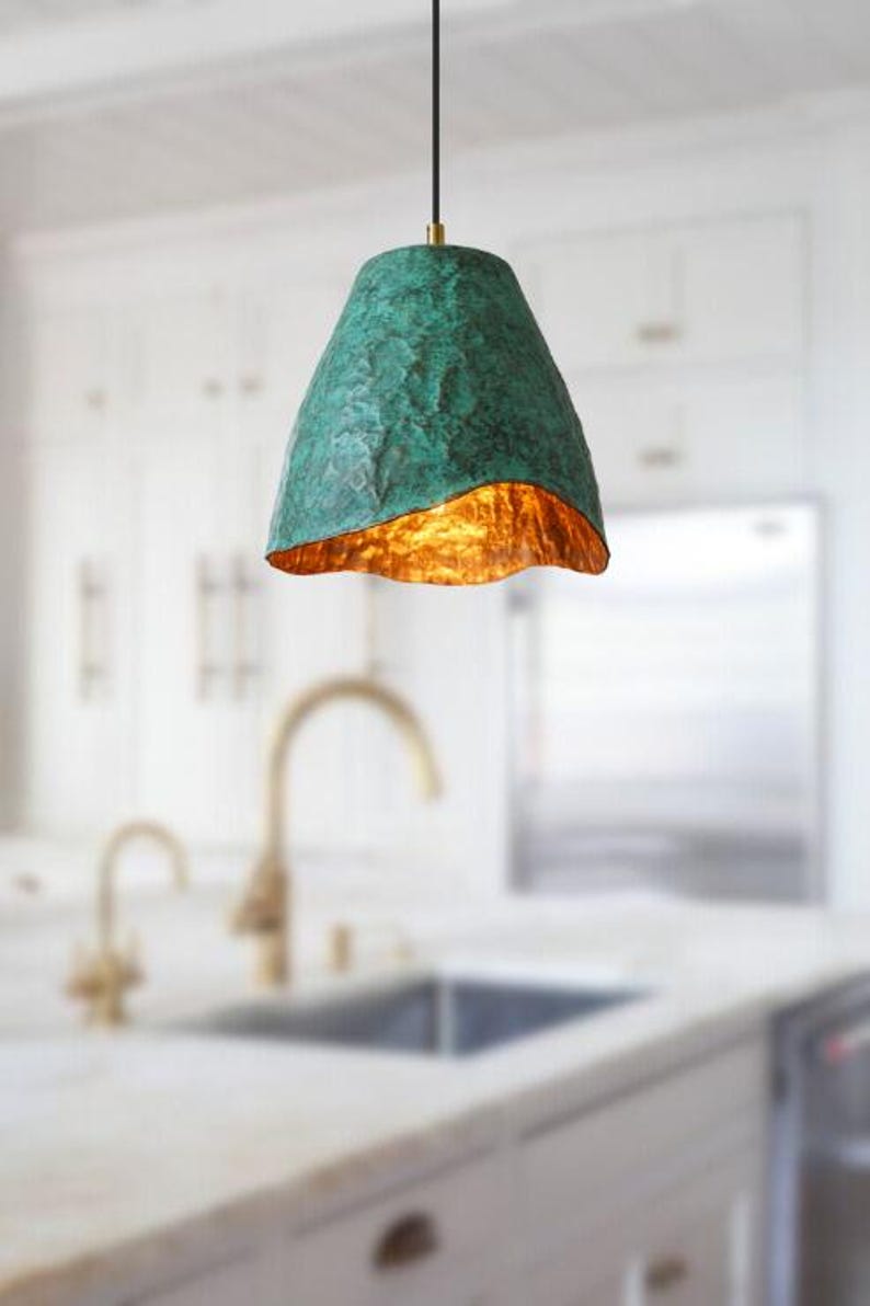 Handmade Oxidized Copper Pendant Light, Green Patina Copper Dome Pendant Light, Farmhouse Kitchen Ceiling Lamp Fixture