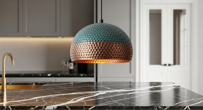 Handmade Copper Dome Lamp with Green Patina – Rustic Artisan Lighting