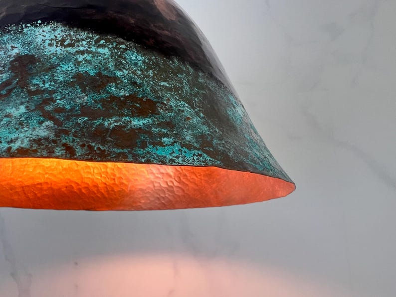 This unique Patina Copper Dome Pendant Light is a true statement piece, handcrafted from solid copper and finished with a natural verdigris patina. The striking mix of earthy brown, deep black, and oxidized turquoise green creates a bold contrast that adds depth and soul to any room.