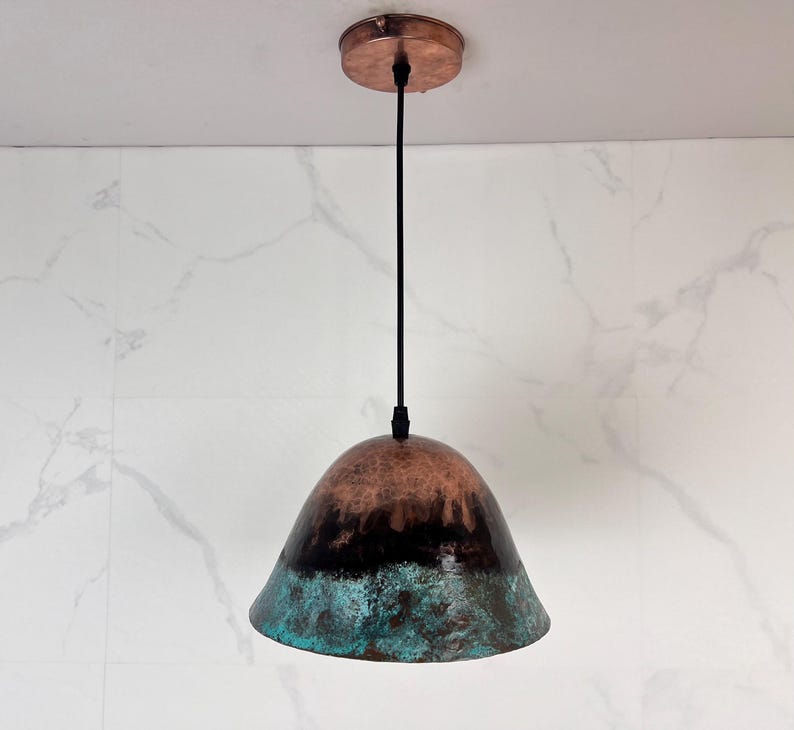 Handmade Patina Copper Dome Pendant Light: Rustic Verdigris Finish