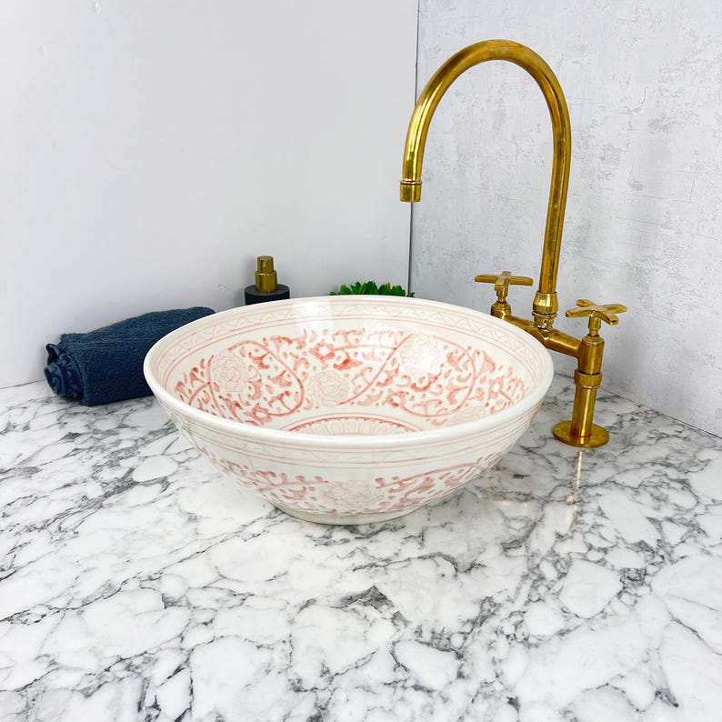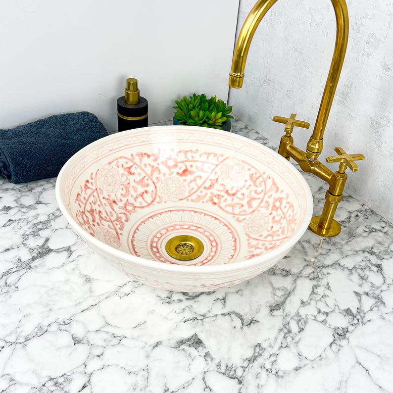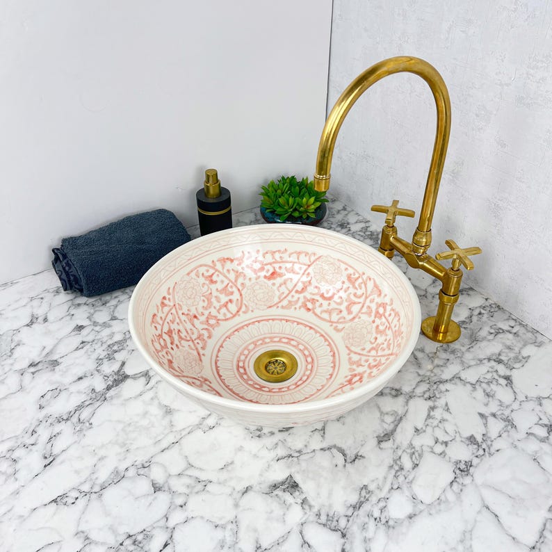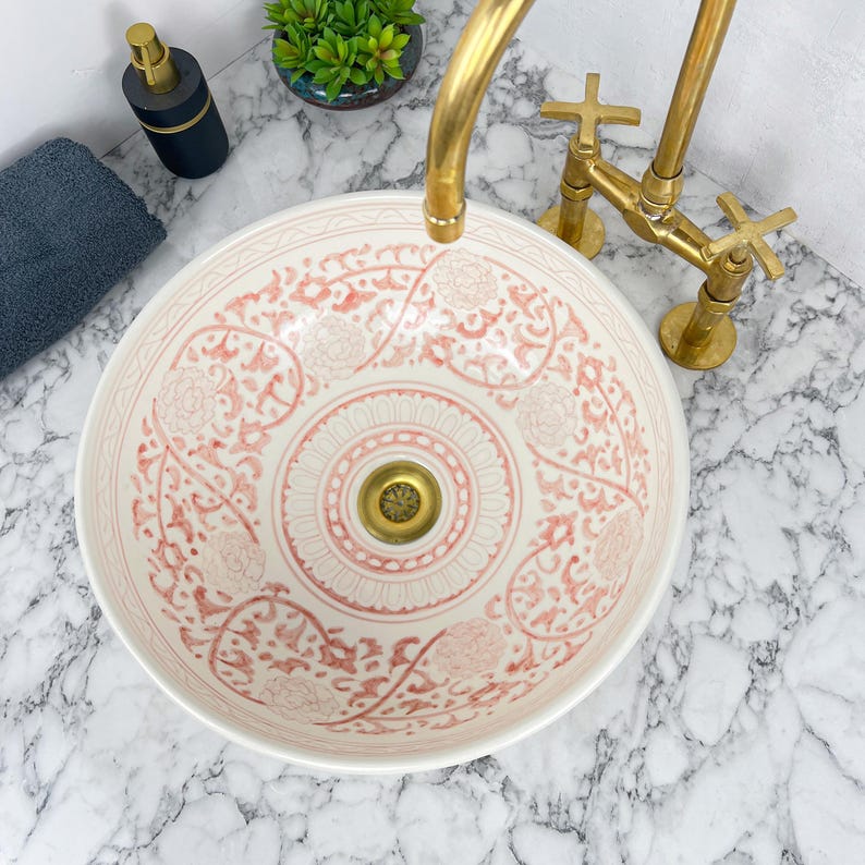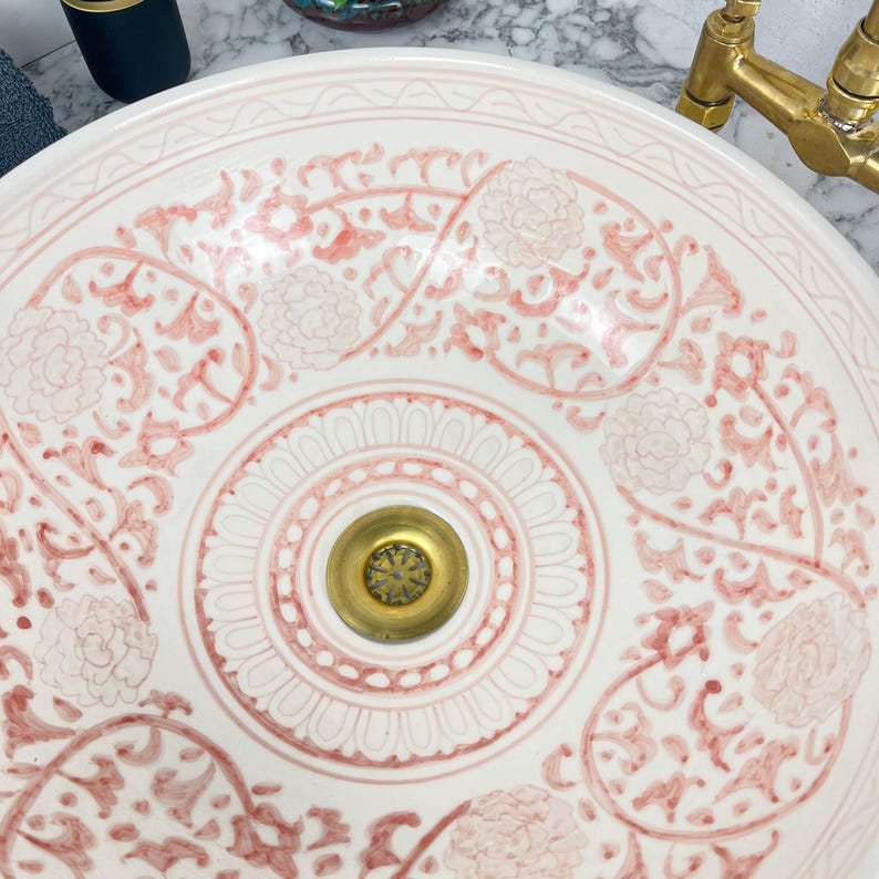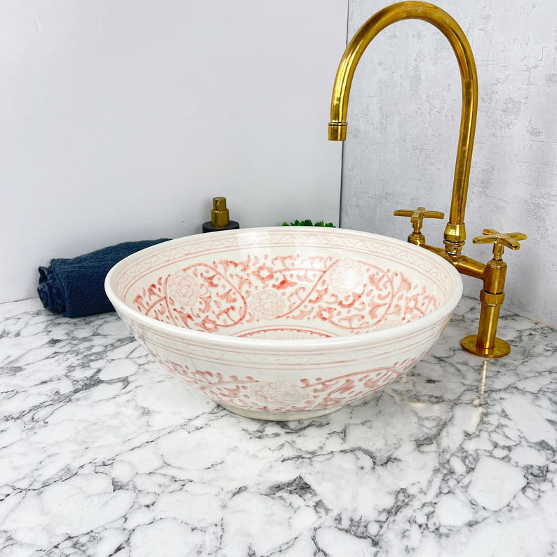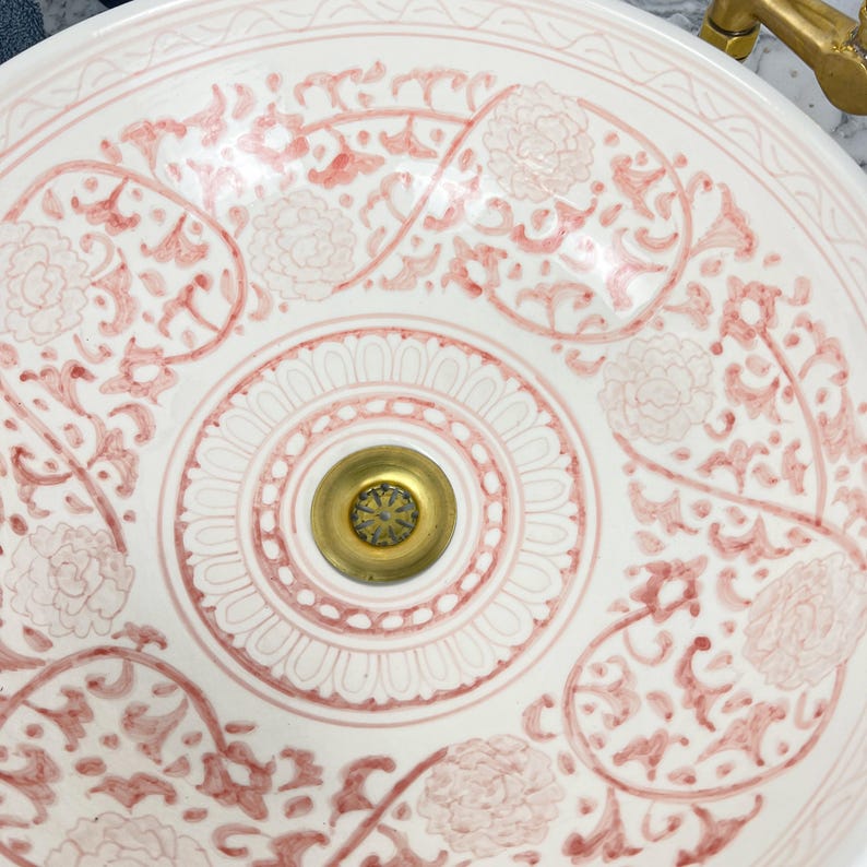 Handmade Pink Floral Sink - Vanity Counter Top Washbasin - Moroccan Porcelain Sink - Bathroom Sink - Ceramic Sink - Art Basin Decor