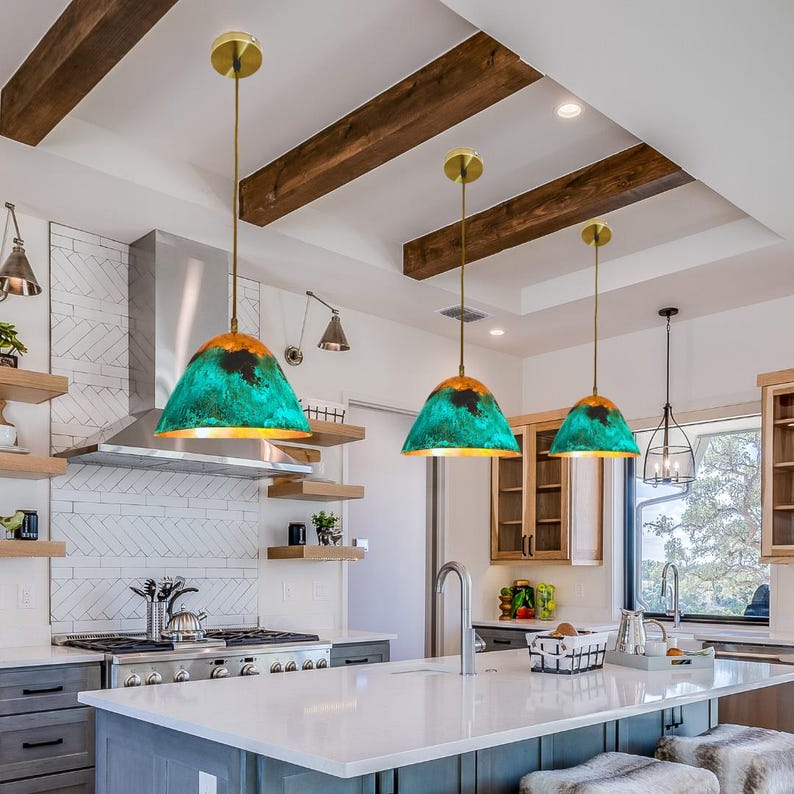 Handmade Sets of Green Patina Copper Pendant Light, Hammered Kitchen Island Light Fixture, Oxidized Dome Ceiling Light, Rustic Pendant Lamp