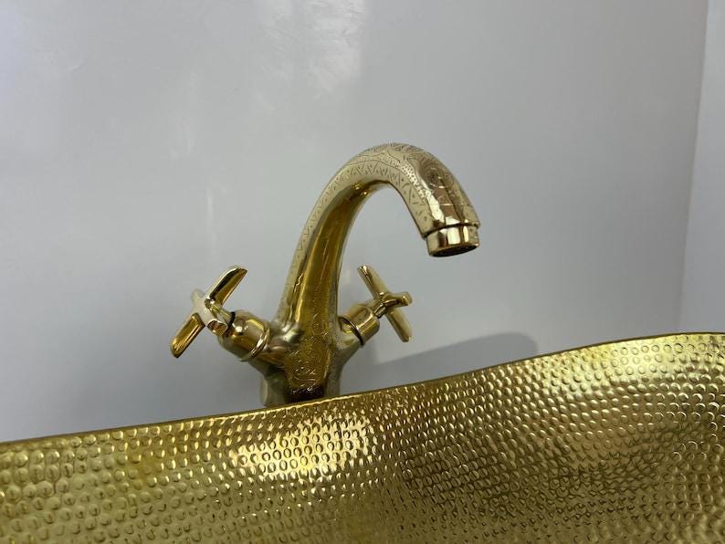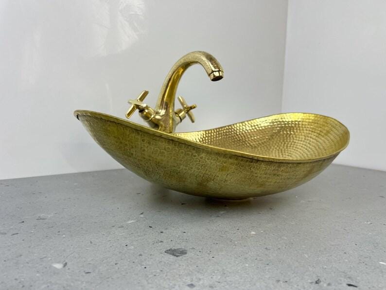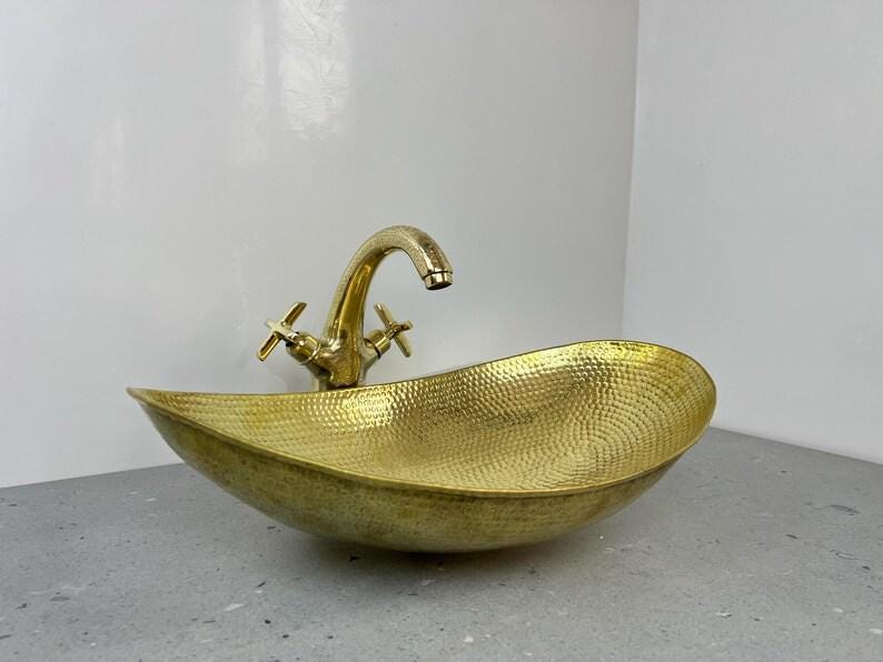 Transform your bathroom into a sanctuary of timeless craftsmanship with this Handmade Unlacquered Brass Oval Sink, meticulously shaped by Moroccan artisans. Each basin is hand-hammered from 100% solid unlacquered brass, developing a rich natural patina that tells its own story over time. The oval boat-shaped silhouette and gently curved edges merge luxury and practicality, while the reflective hammered texture radiates a warm, golden glow.