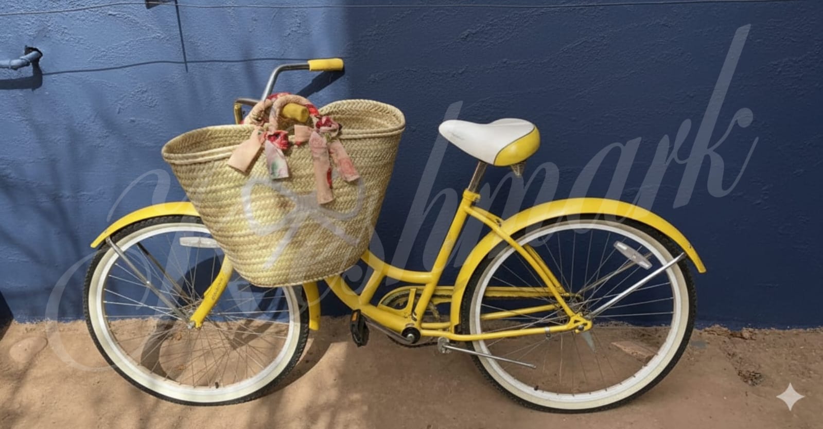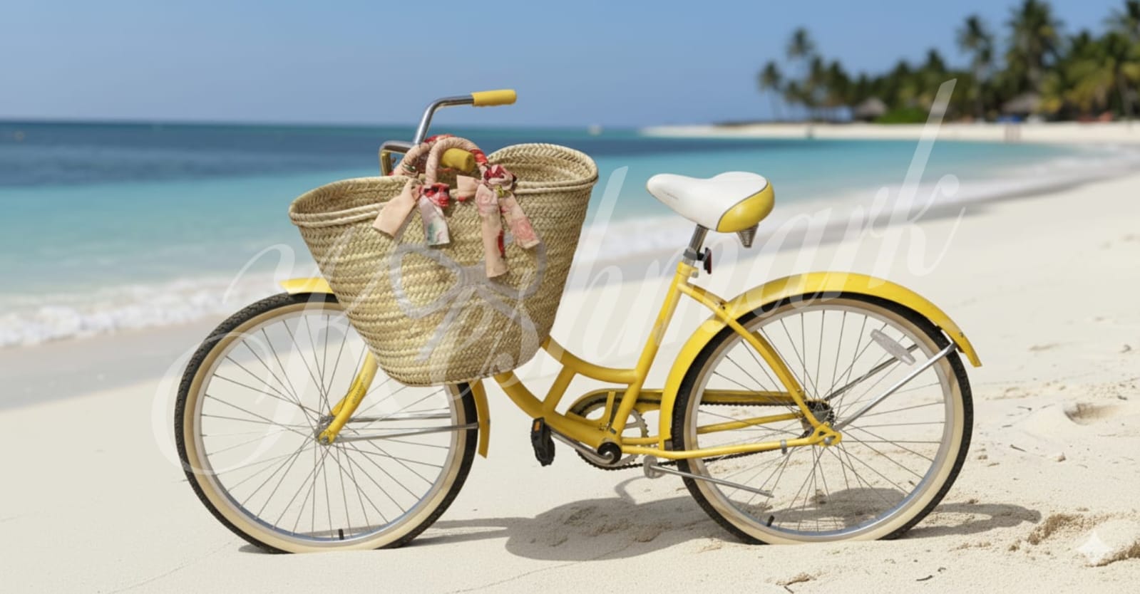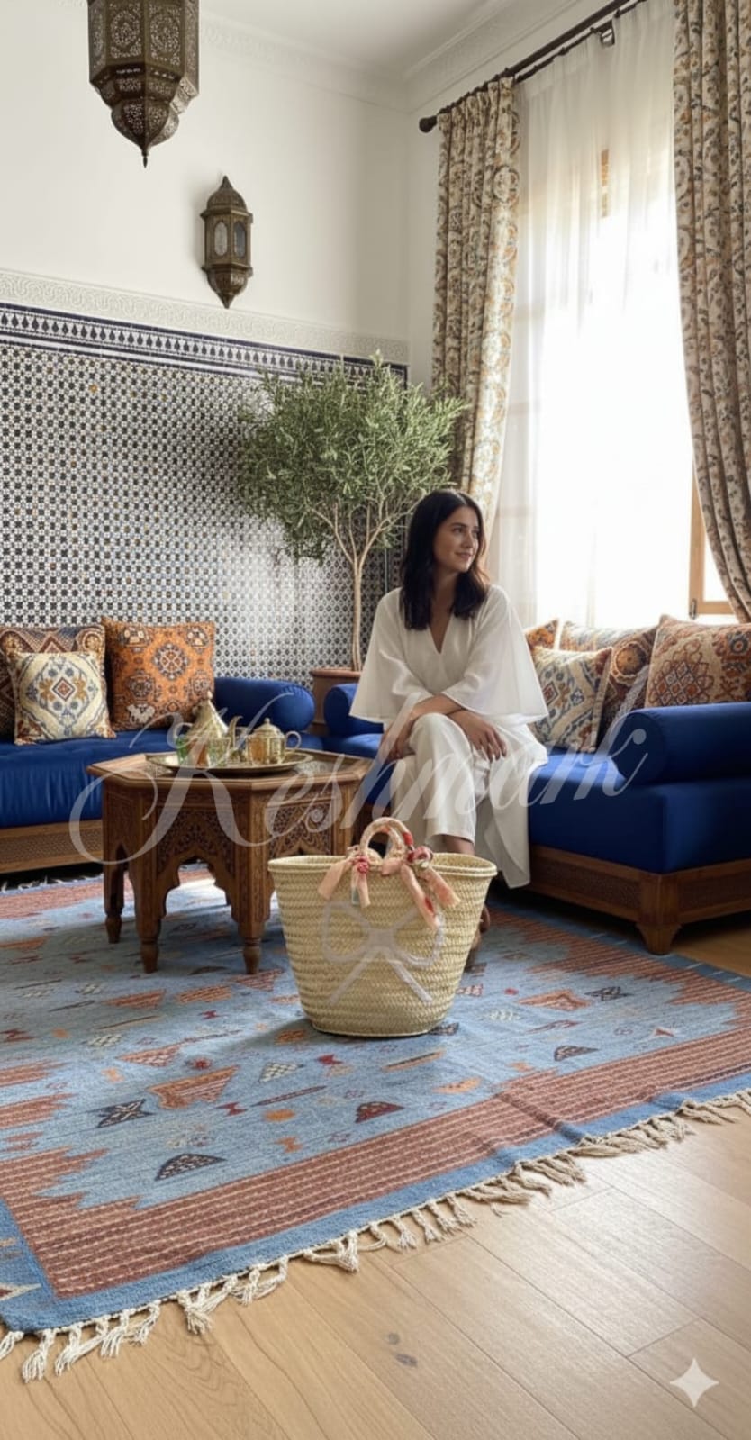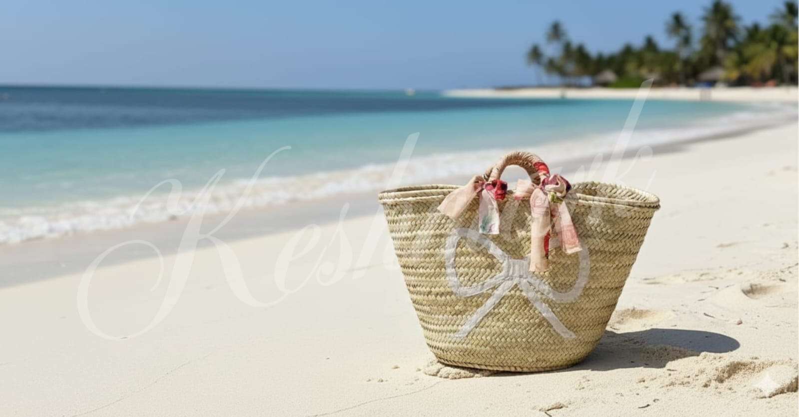 Handwoven Moroccan Straw Basket with Floral Ribbon & White Bow – Summer Beach Tote, Handmade Bag by KESHMARK