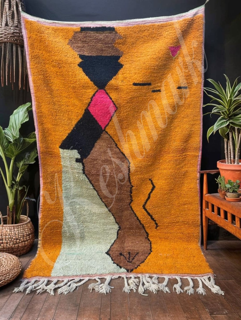 Each line and color combination tells a story — inspired by Moroccan landscapes, desert tones, and ancestral Amazigh (Berber) symbols. This rug is more than a home accessory; it’s a statement piece that brings warmth, creativity, and authenticity to your space.