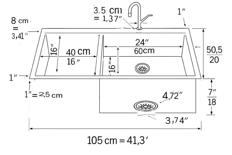 Total Sink Length: 41 inches = 105 centimeters