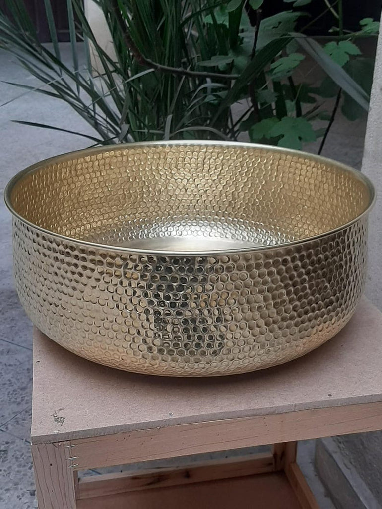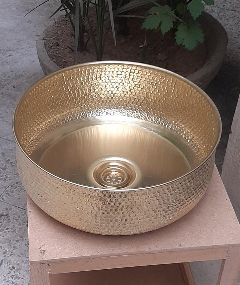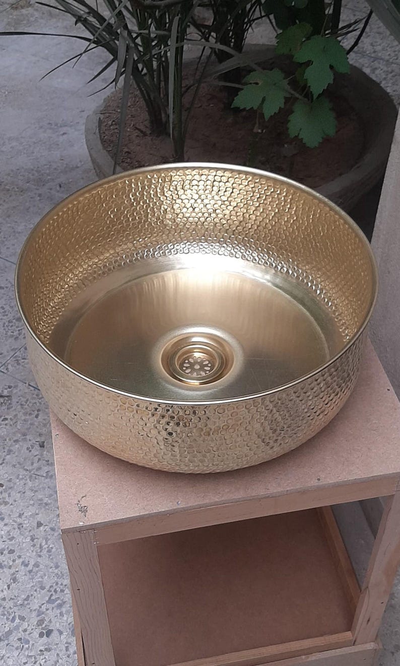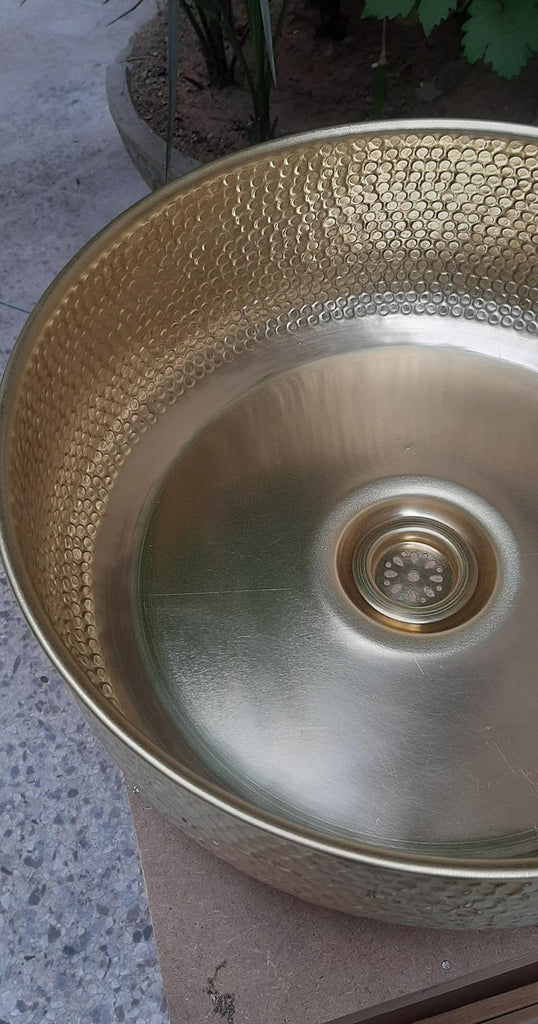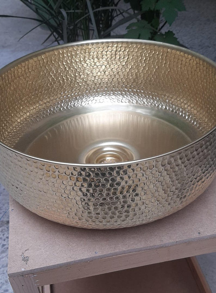 Luxurious Hammered Brass Round Sink – Handmade Above Vanity Bathroom Sink, Countertop Basin with Warm Brass Tone, Moroccan Home Decor