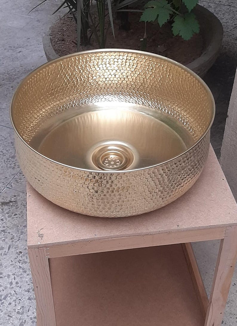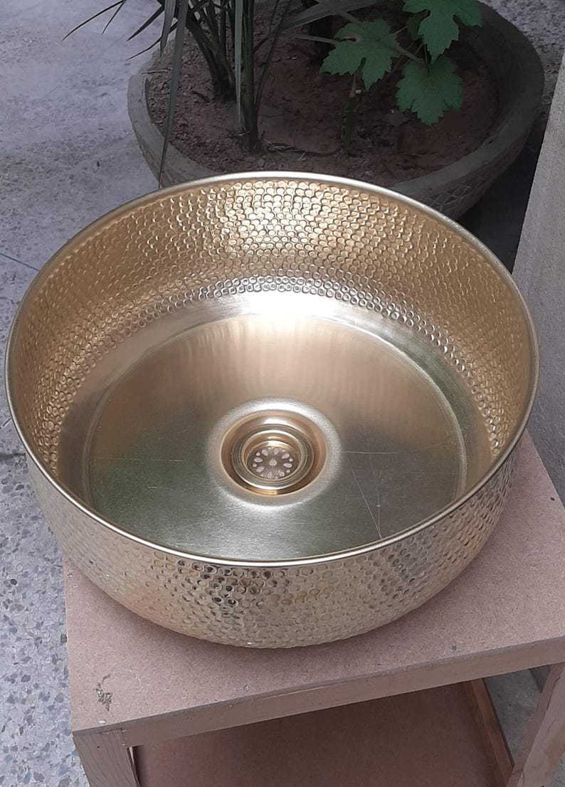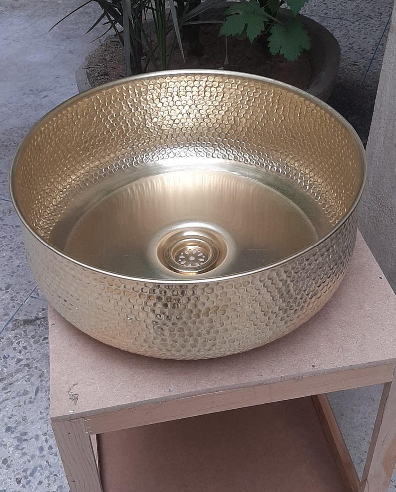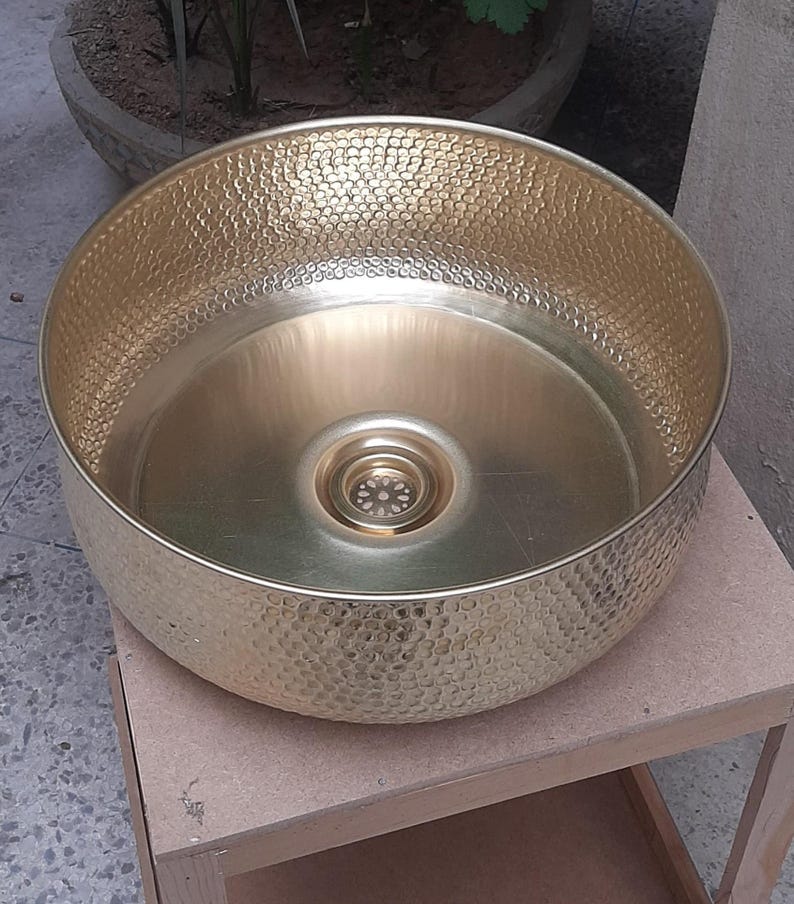 Luxurious Hammered Brass Round Sink – Handmade Above Vanity Bathroom Sink, Countertop Basin with Warm Brass Tone, Moroccan Home Decor