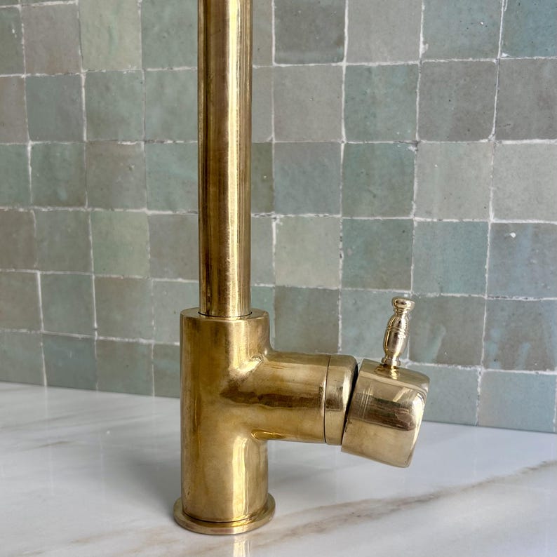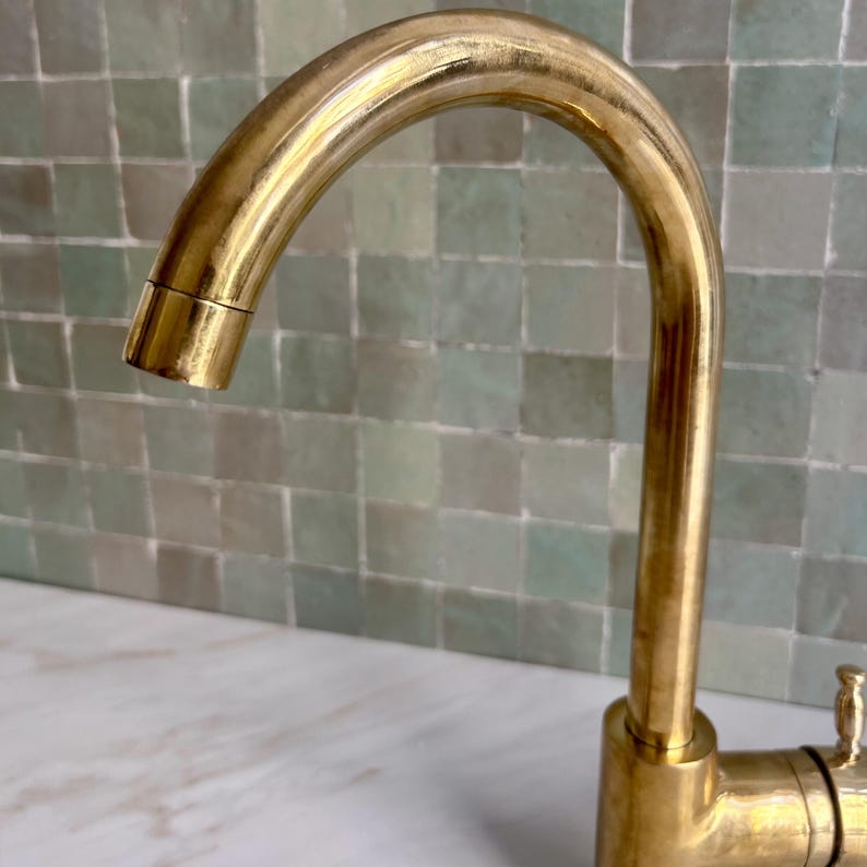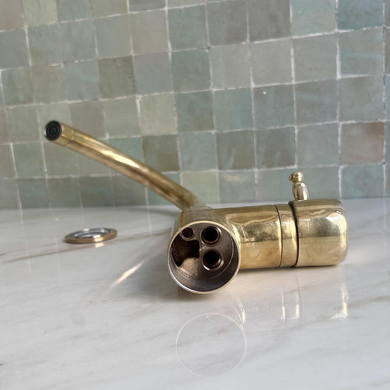 Expertly handmade in Morocco from solid brass, the golden tone of this faucet ages naturally over time, developing a soft, rich patina, or you can request a polished or matte finish for a contemporary look.