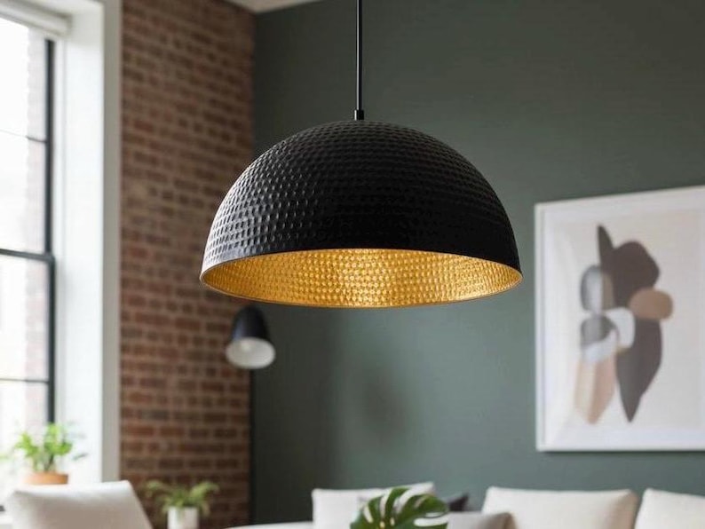 Modern Brass Pendant Light – Hammered Dome Ceiling Lamp | Black Dome Ceiling Light