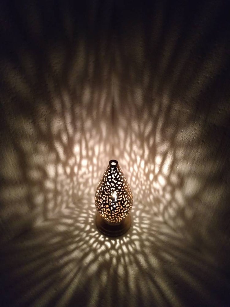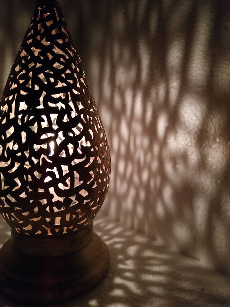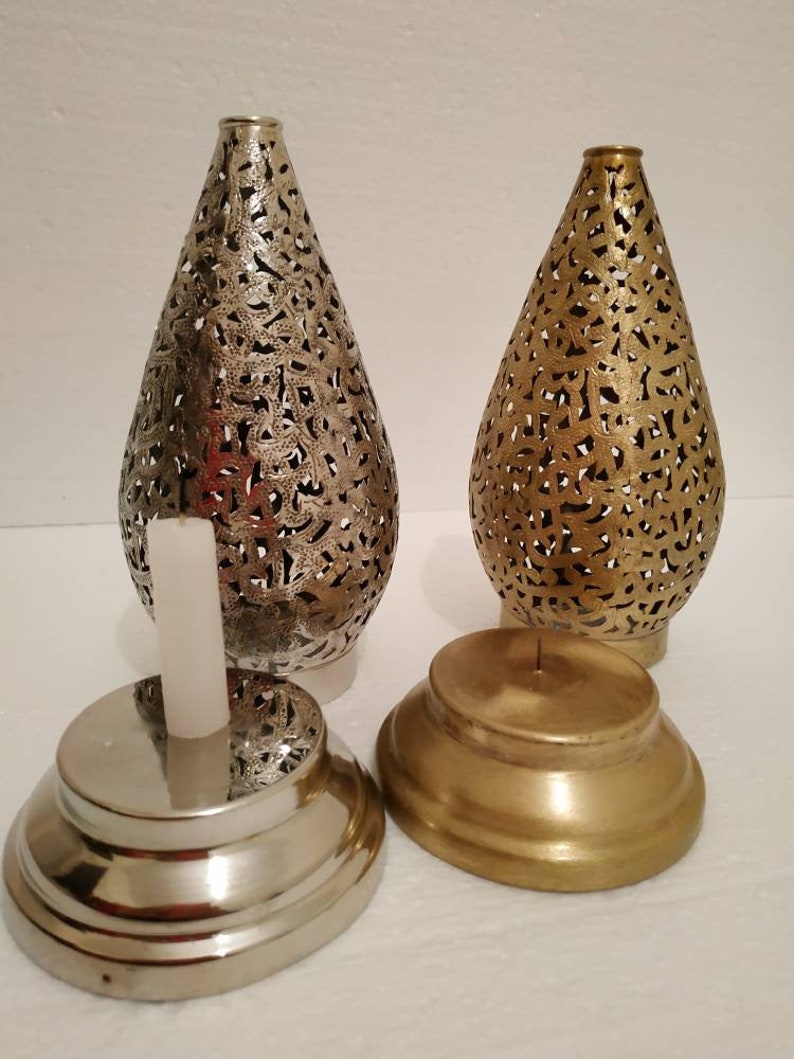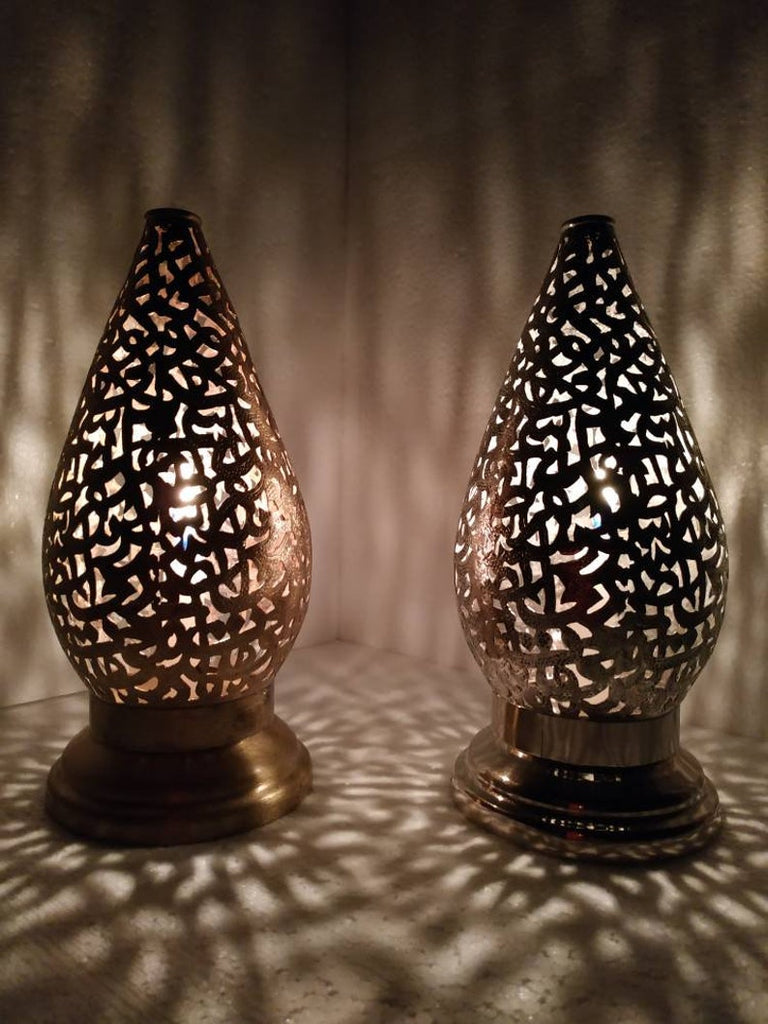 Moroccan Brass Candle Table Lamp: Arabic Calligraphy Home Decor Set of 2