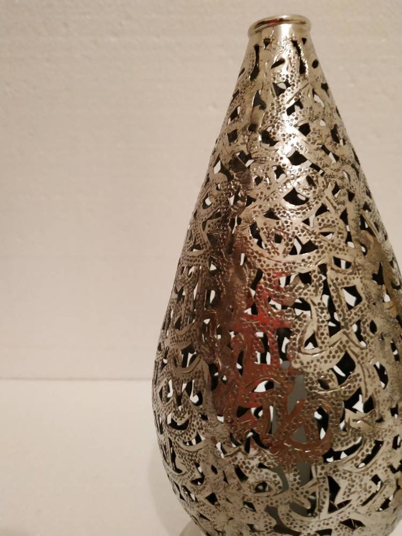 This Moroccan Brass lamp Votive is the high-quality candle holder with Antique Brass finish exterior and eye-catching copper interior, Engraved by especial Arabic Text Calligraphy that allows to diffuse a beautiful reflection through its beautiful openwork and to illuminate your interior.