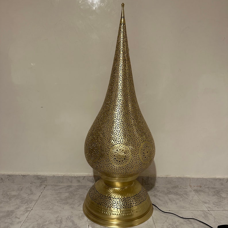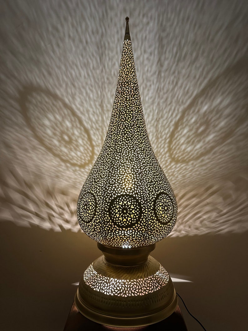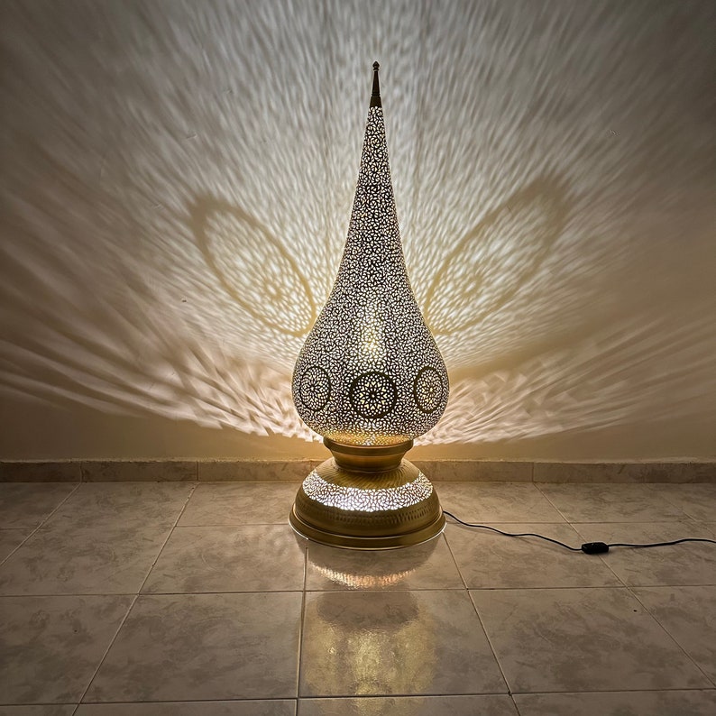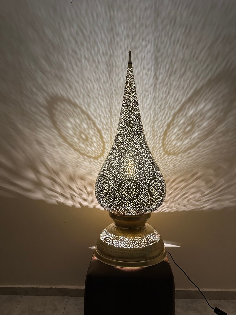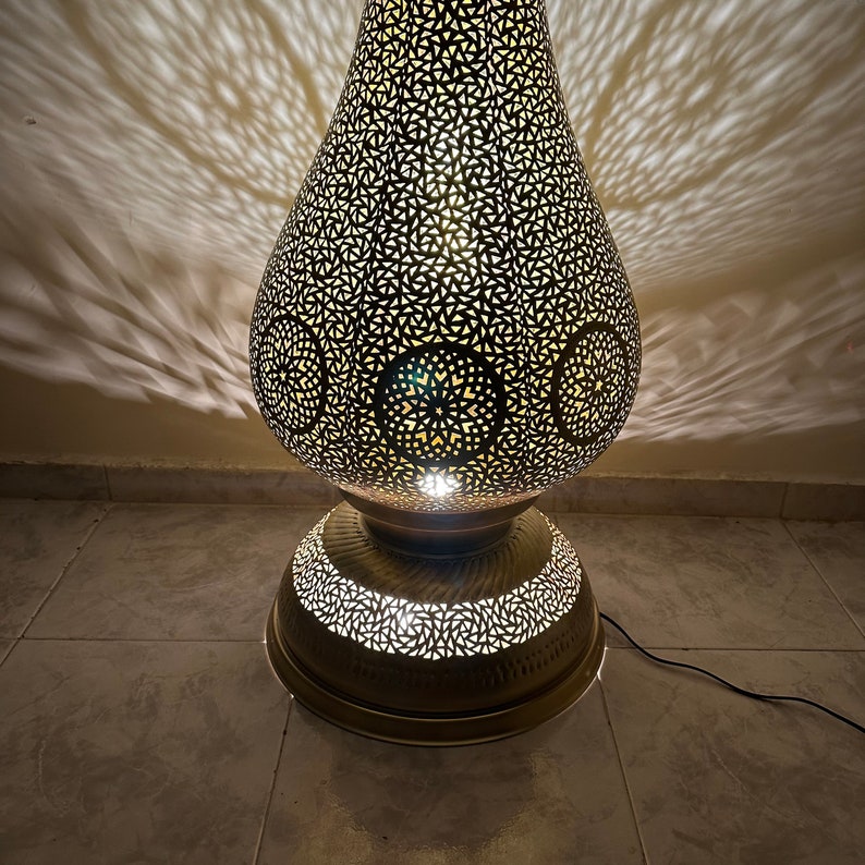 Moroccan brass lamp, large table lamp, artisanal bedside lamp, bronze table lamp, silver lamp, copper floor light , standing lamp , Morocco