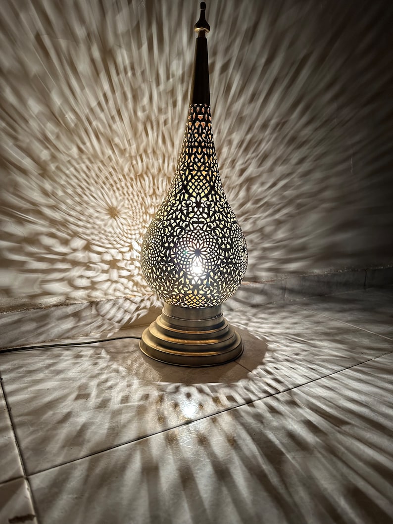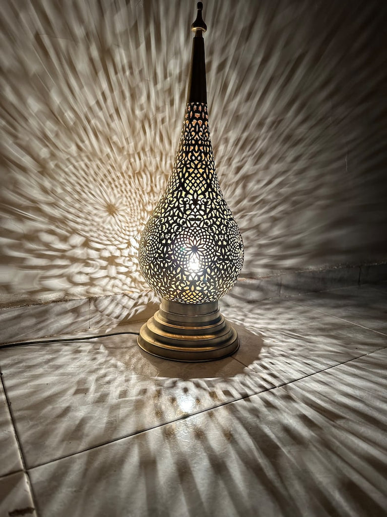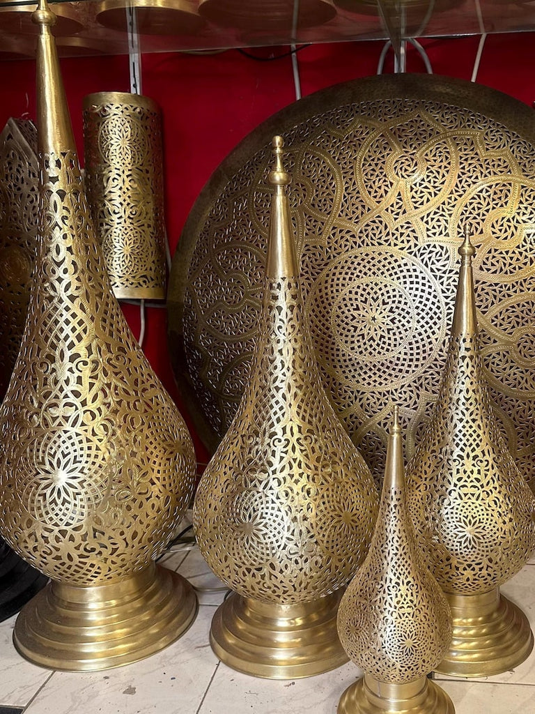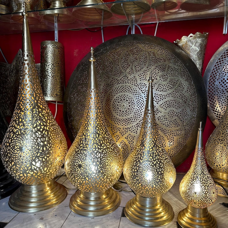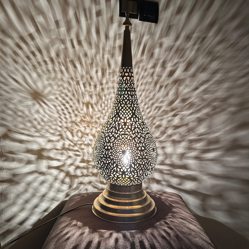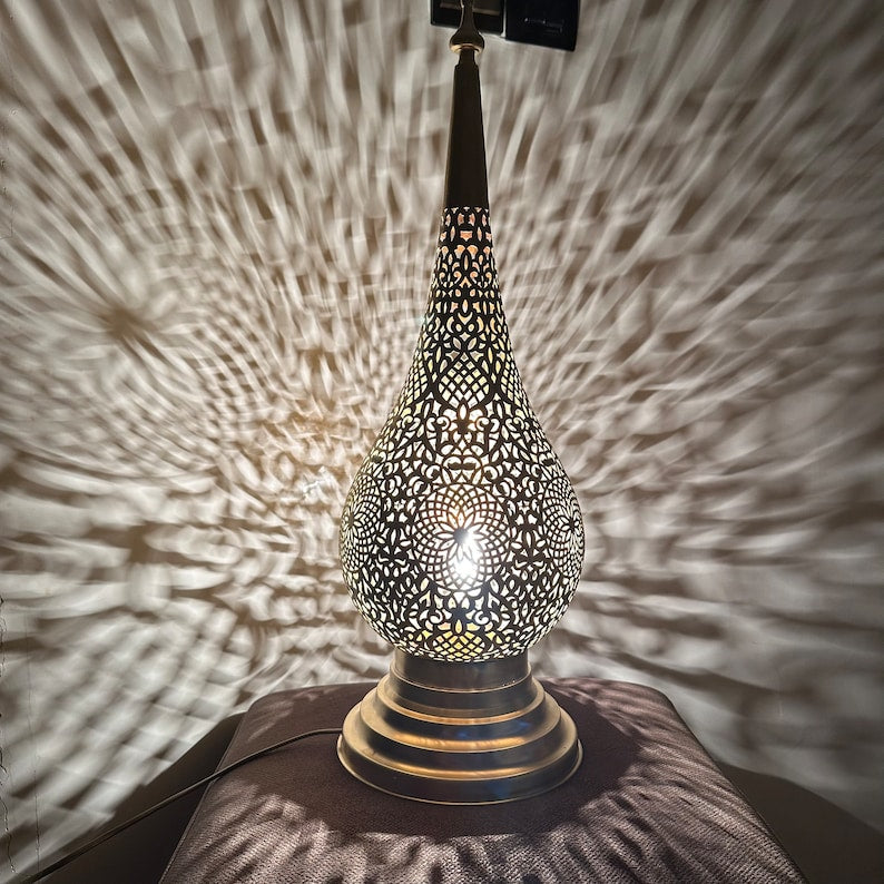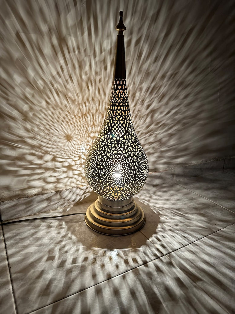 Table and floor lamp producing a great effect in the room when lighting, giving a Moroccan and oriental stye to your interior desing.