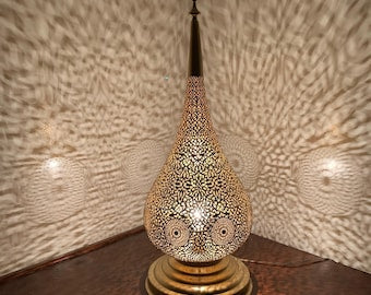 Moroccan brass table lampe, lampshade , and brass decoration handmade. Perfect decor for you interior for any room in your home : bedroom, living room, entry, and desk.