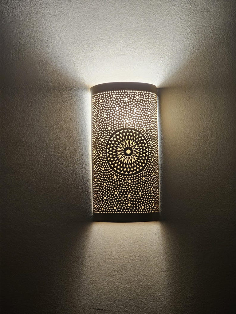 Moroccan Brass Wall Sconce: Handcrafted Lamp, Global Design
