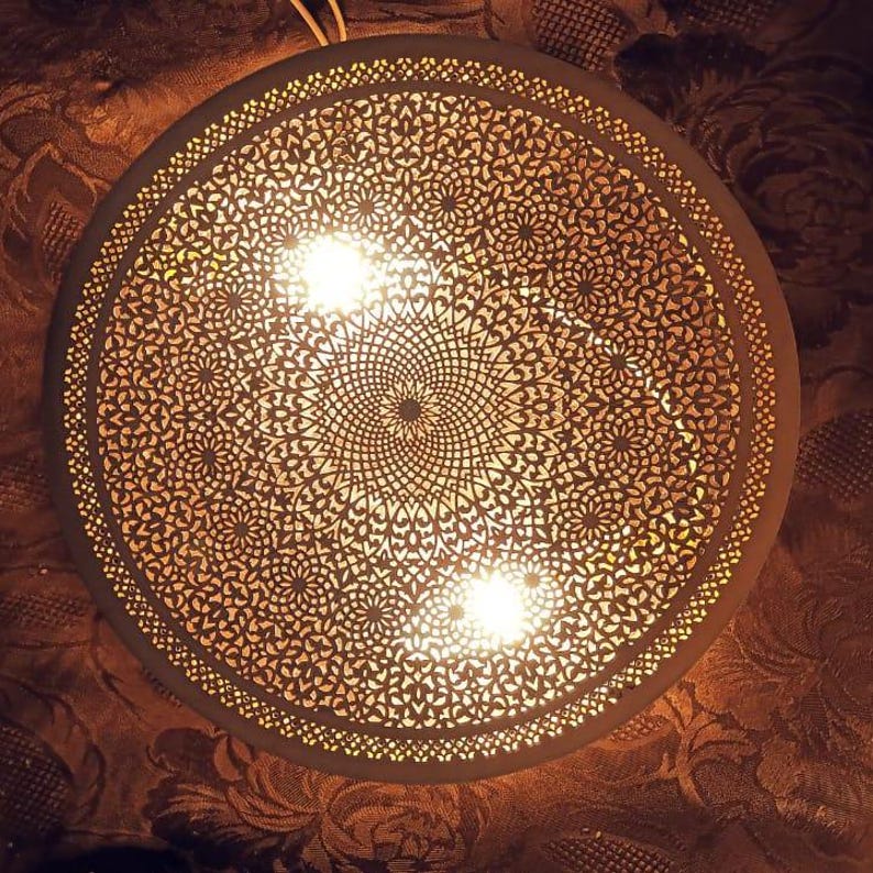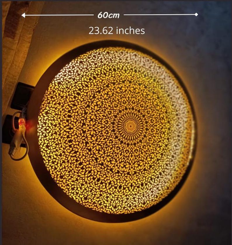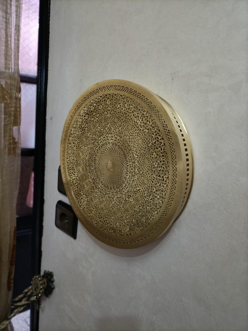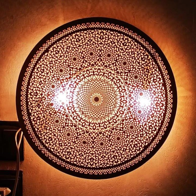 Bring warmth and authentic Moroccan charm into your home with this handcrafted Moroccan copper wall lamp. Each piece is carefully made by skilled artisans, featuring intricate traditional cut-out patterns that create a stunning light and shadow effect when illuminated.