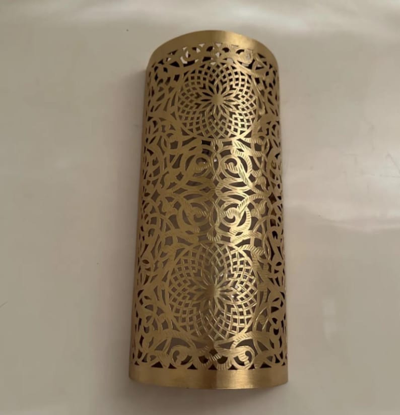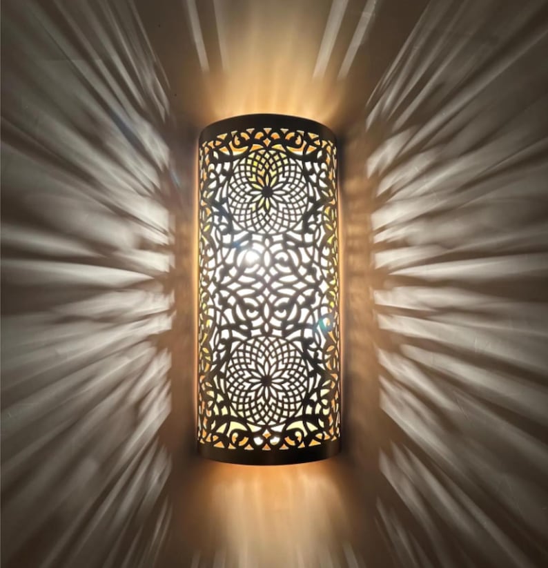 Each sconce is engraved and shaped by hand by our skilled Moroccan artisans, ensuring high-quality, detailed craftsmanship. The intricate design creates a stunning lighting effect on your wall when the lamp is lit.