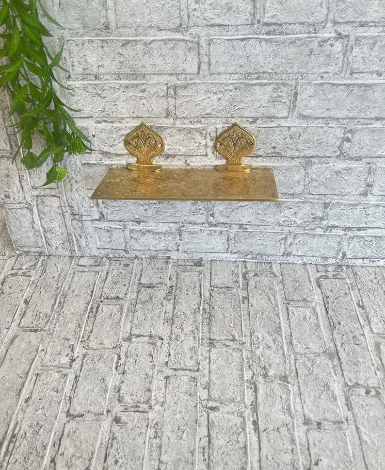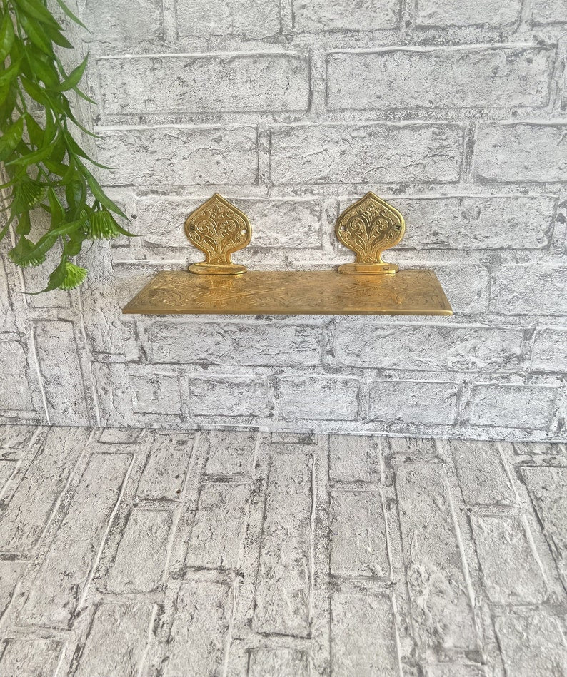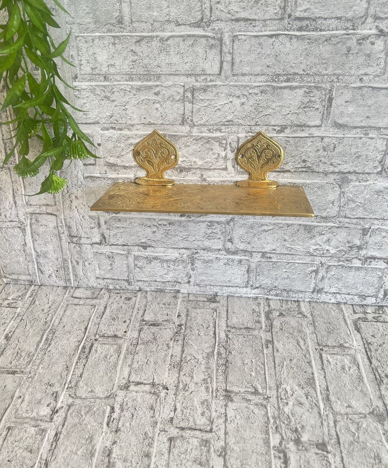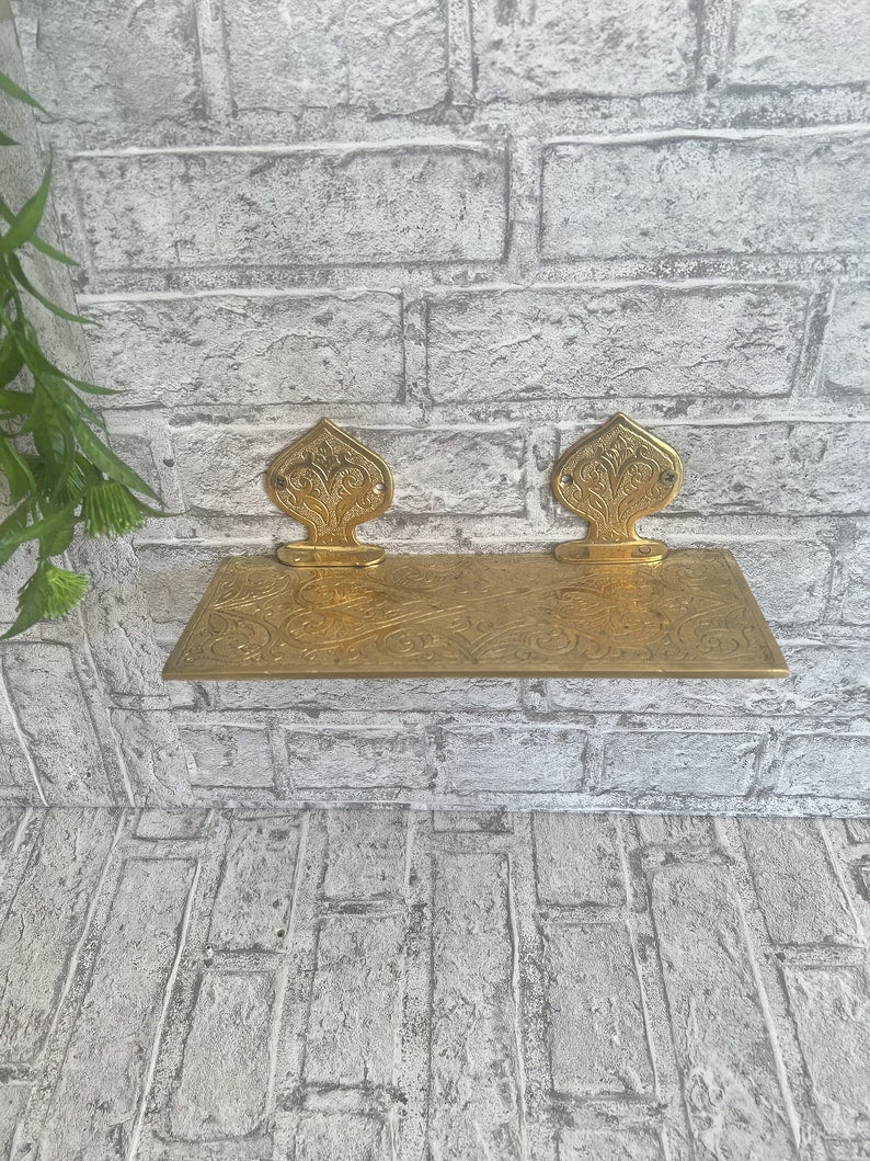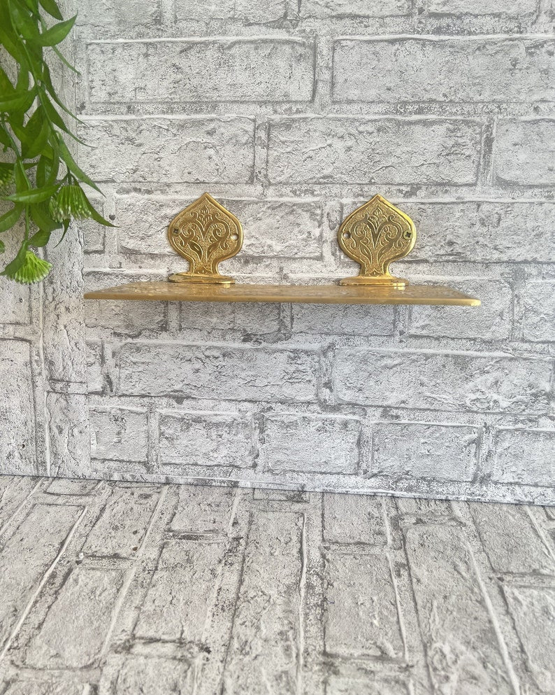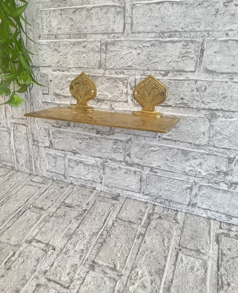 Moroccan Brass Wall Shelf – Handmade Engraved Solid Brass Bathroom Shelf – Floating Wall Mounted Shelf for Kitchen, Shower & Home Décor