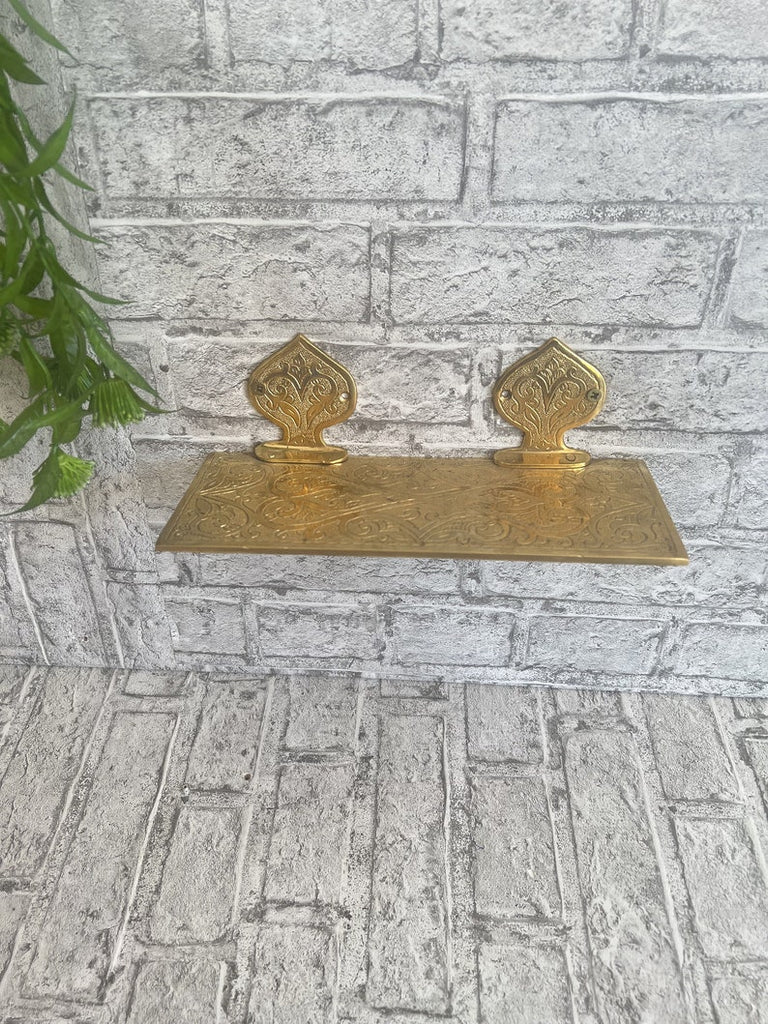 Bring timeless Moroccan artistry into your home with this Handmade Engraved Solid Brass Wall Shelf. Meticulously crafted in Marrakech, this floating wall-mounted shelf combines traditional Moroccan patterns with modern functionality, making it a versatile addition to your bathroom, kitchen, or living space.