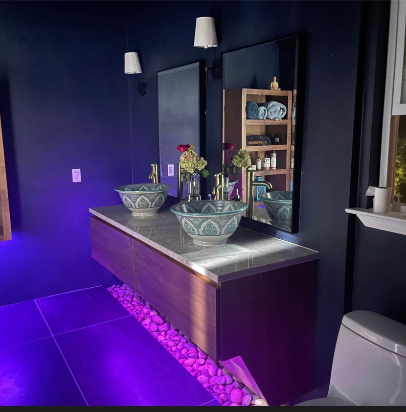 in addition to being beautiful and unique, handmade, hand-painted ceramic sinks made by wheel in Morocco are also very durable. The high-quality clay used to create the sinks is resistant to cracking and chipping, and the glaze applied to the surface provides added protection against water and stains. These sinks are built to last and with proper care and maintenance, they can last for many years.