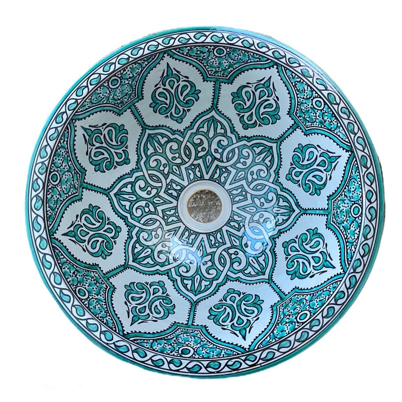 These handmade, hand-painted ceramic sinks are a true work of art and a reflection of the rich cultural heritage of Morocco. They are not only functional, but also a beautiful decorative element in any bathroom or kitchen. Due to the handmade nature of these sinks, each one is unique and no two sinks are exactly alike, making them a one-of-a-kind addition to your home.