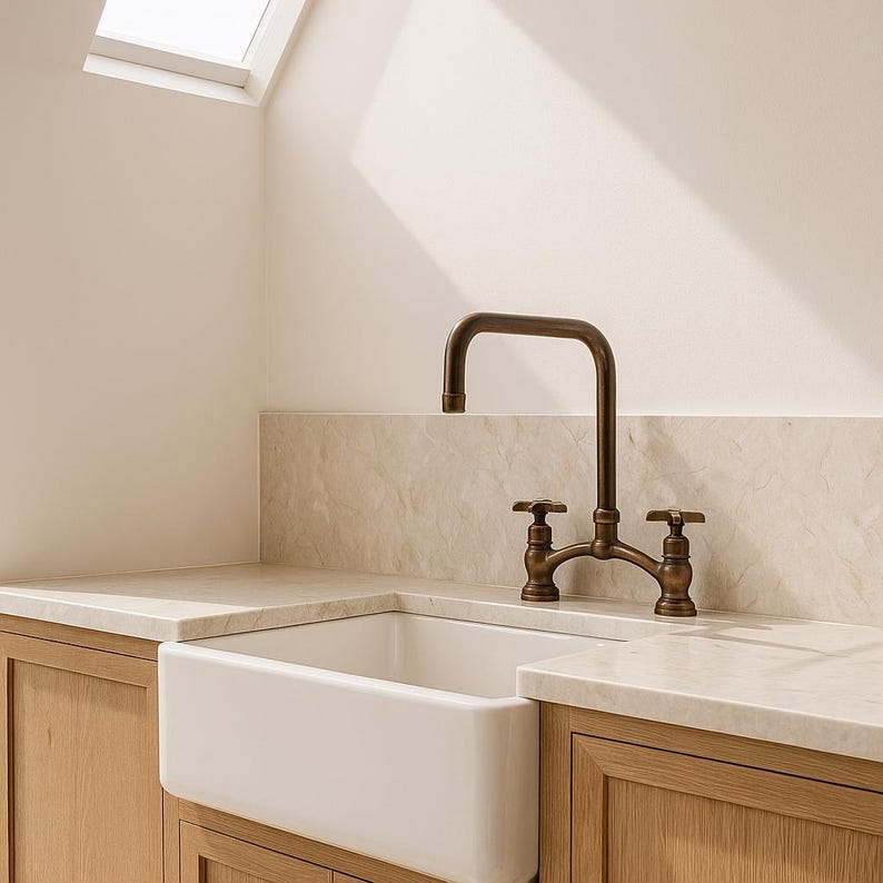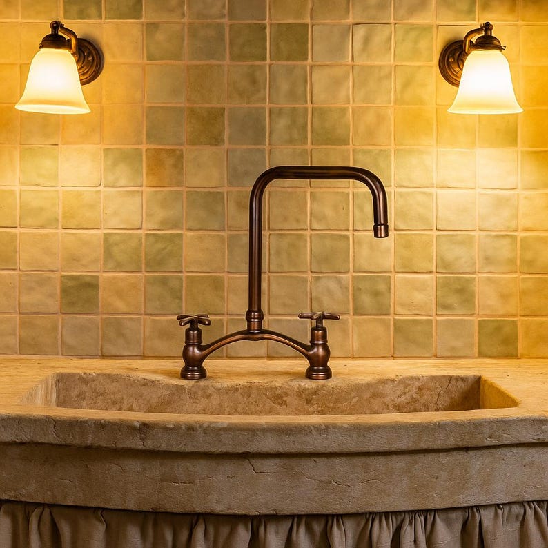 Upgrade your kitchen or bathroom with this artisan-made Moroccan brass bridge faucet, crafted from 100% solid unlacquered brass or copper. Each piece is meticulously handmade to blend luxury, function, and traditional Moroccan charm. Designed with two style options – a classic Gooseneck Spout or a sleek Square Spout – this faucet is a showpiece for any high-end design.