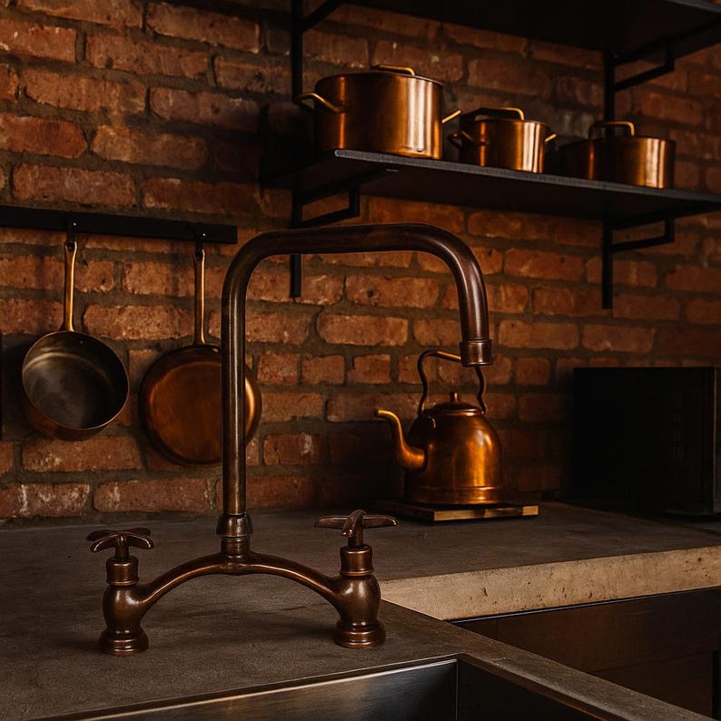 Perfect for farmhouse sinks, copper or brass vessel sinks, or statement bathrooms, this faucet is built to patina over time for a unique, evolving finish.