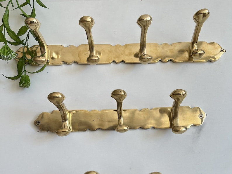 Brass Coat Rack Wall Mount - Engraved Towel Hooks Bathroom - Coat Hooks Wall Mount - Coat Hanger Wall Mount-Hanging Hooks-Wall Mount-Towel Hooks-Engraved Coat Rack-Moroccan Handmade-Clothes Hooks Holder-Unlacquered Brass-Etched Brass