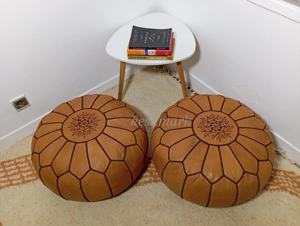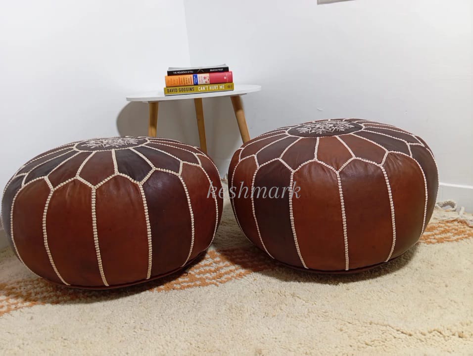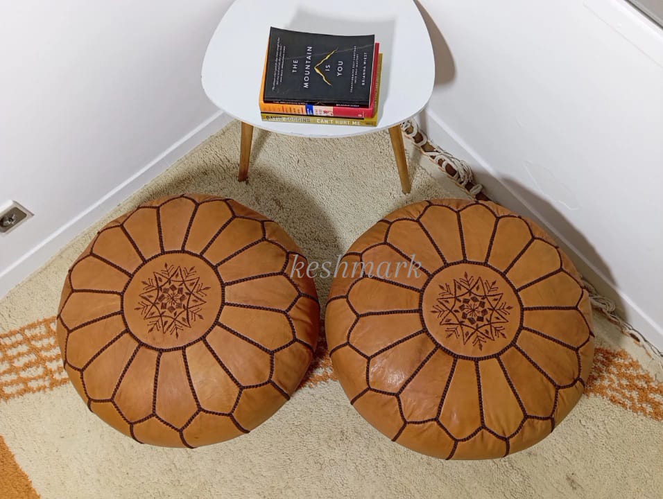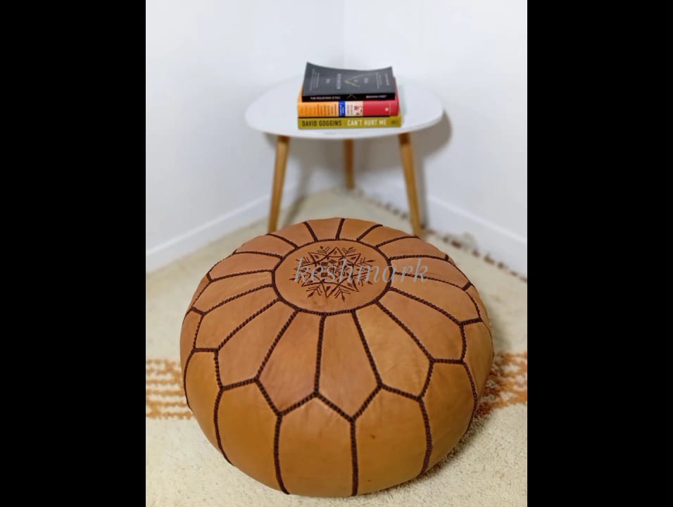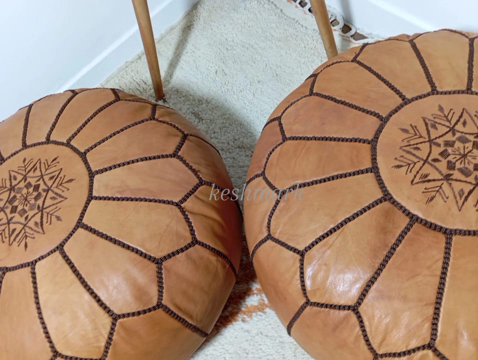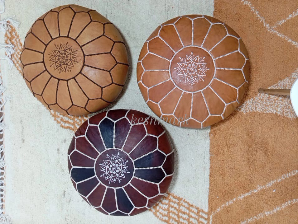 🐪 Moroccan Leather Pouf – Handmade Ottoman by Keshmark