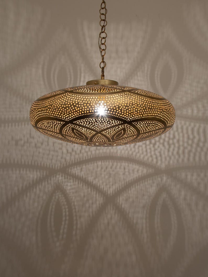 Moroccan Round Moorish Brass Chandelier β Handmade Ceiling Light for Living Room or Bedroom - Boho Style Home Decor