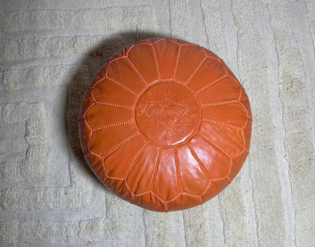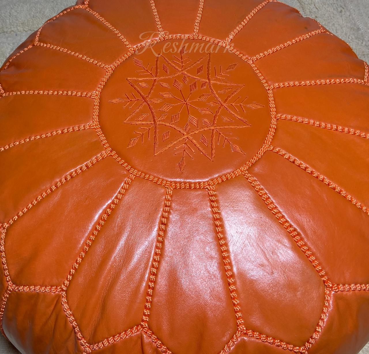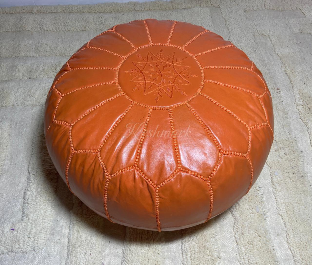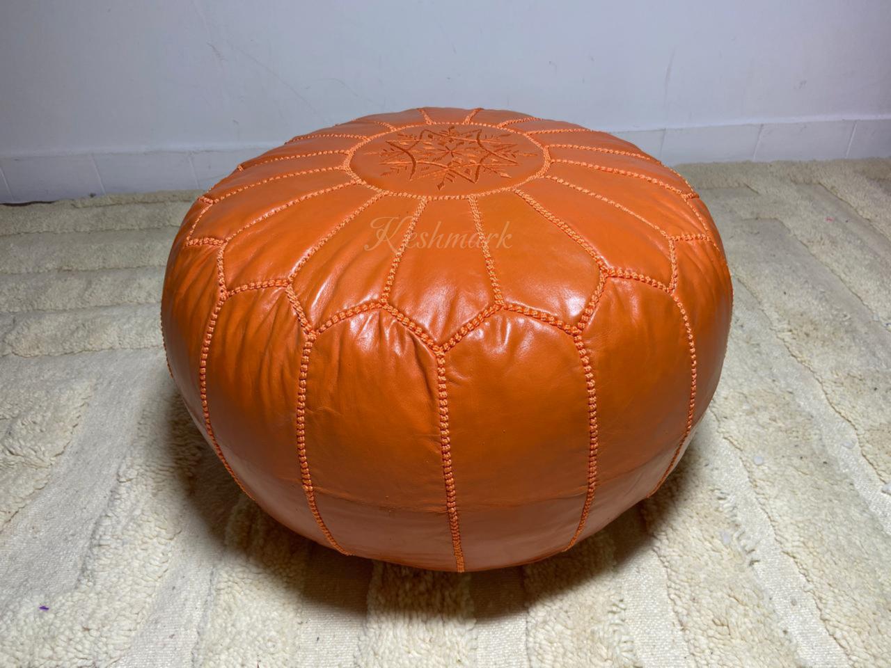 Ottoman footstool leather pouf living room decor, leather pouf ottoman Orange leather, handmade furniture, moroccan pouf, Floor Cushion, With Stuffing