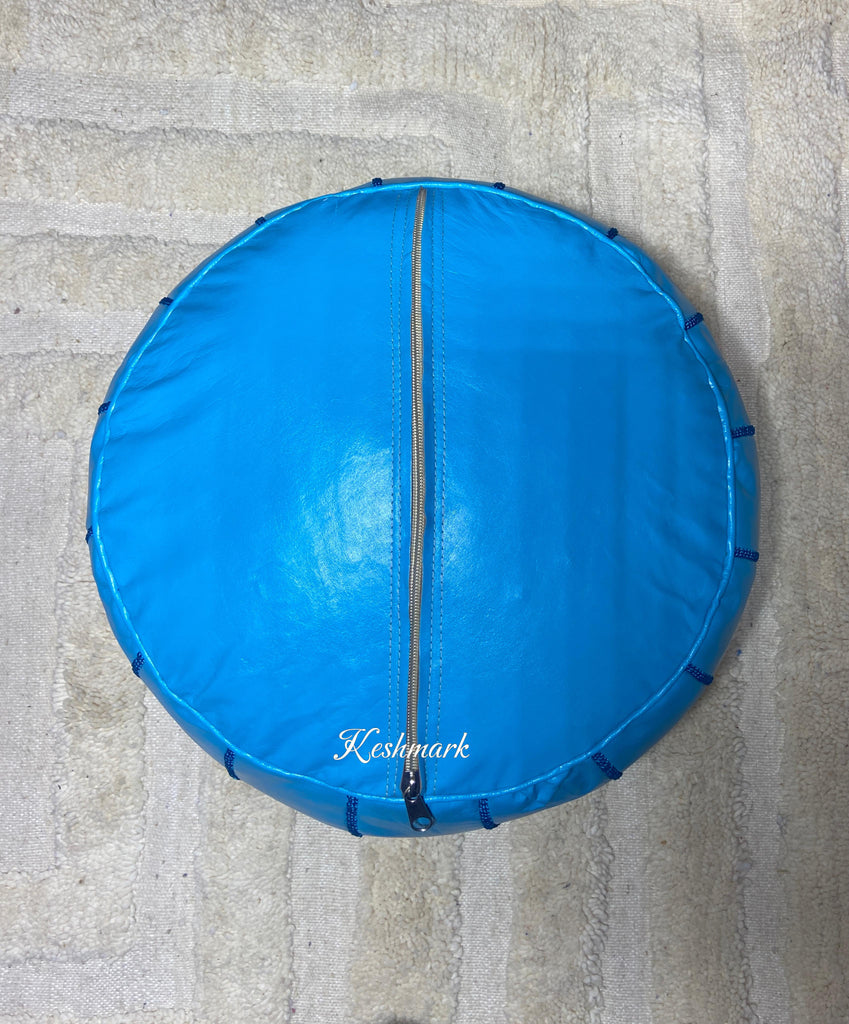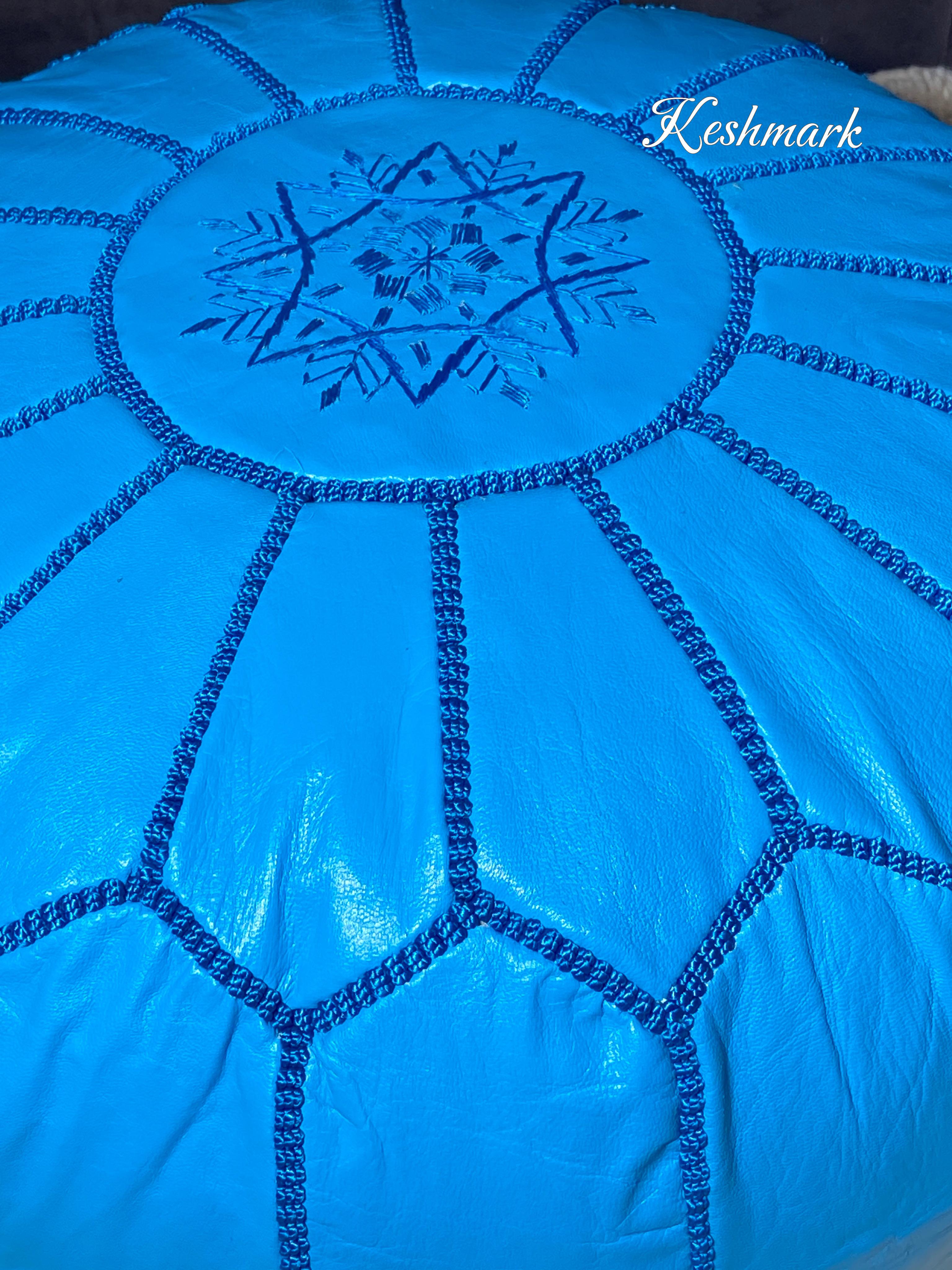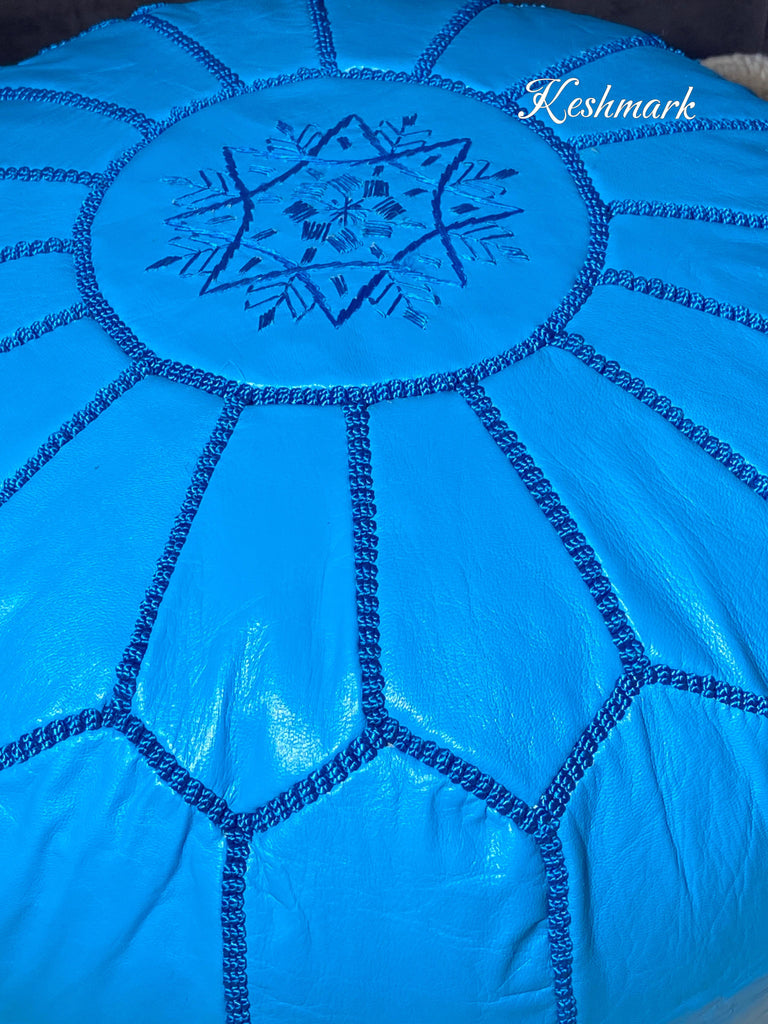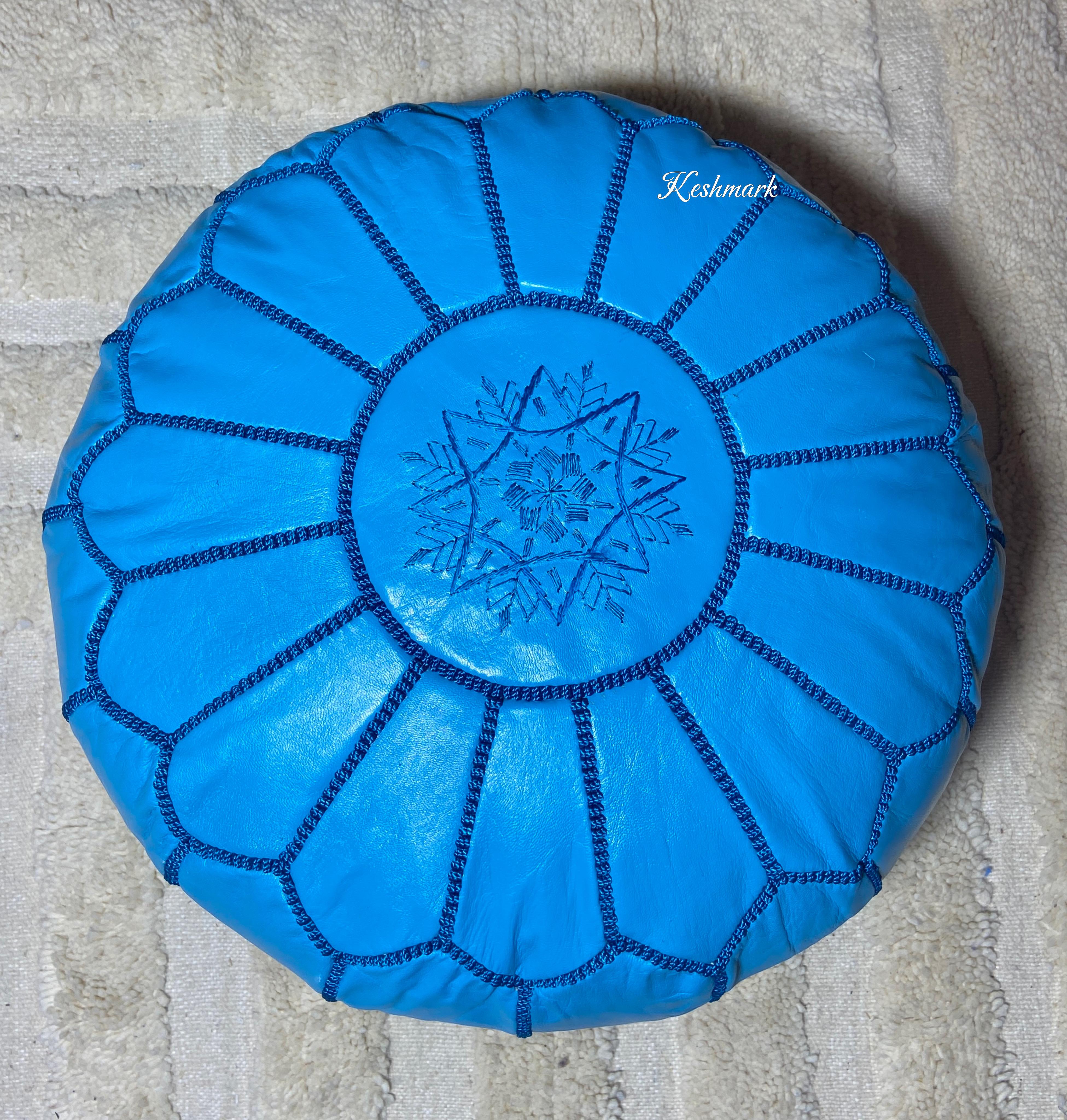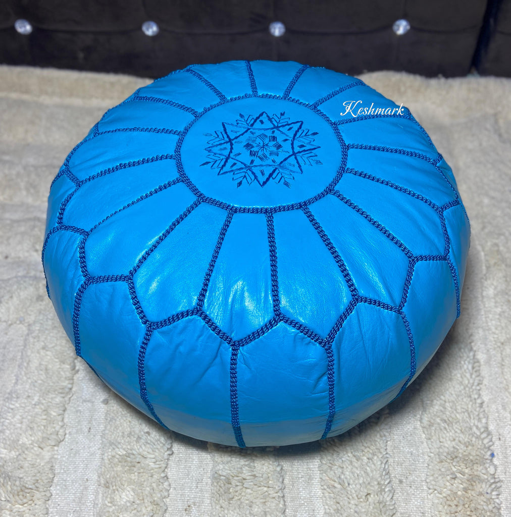 Ottoman footstool leather pouf living room decor, leather pouf ottoman Blue leather, handmade furniture, moroccan pouf, Floor Cushion, With Stuffing