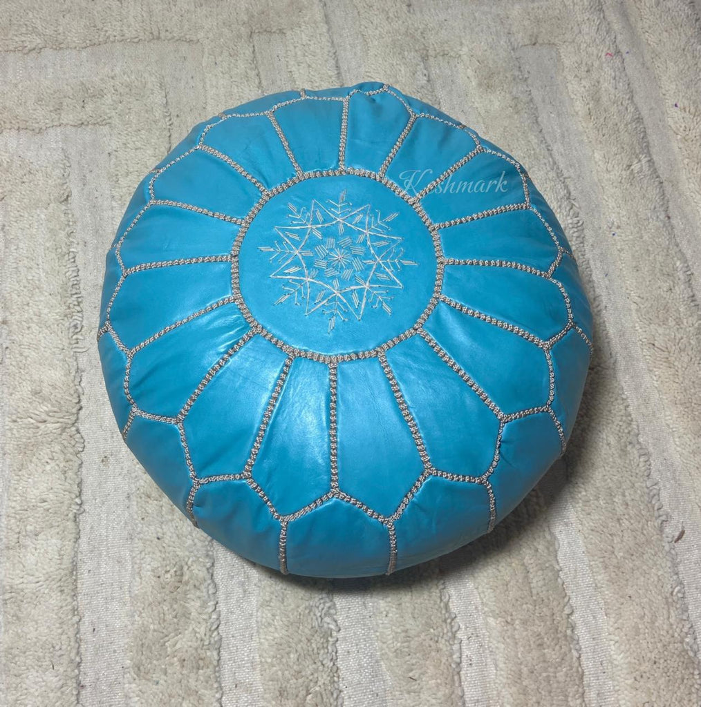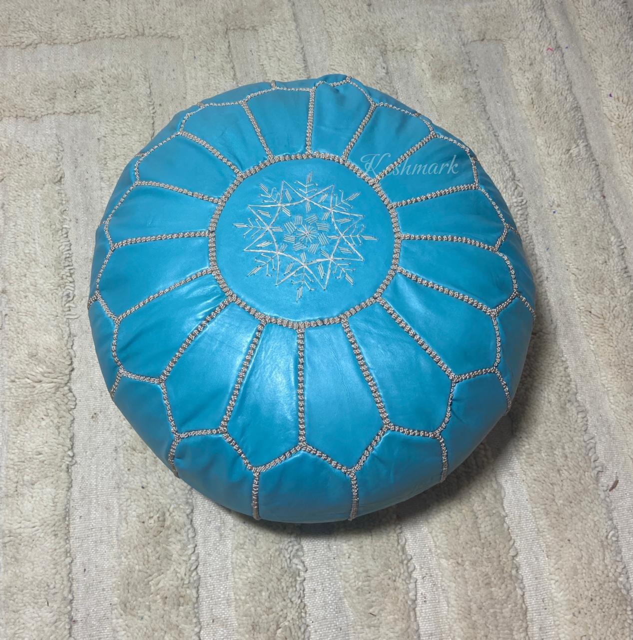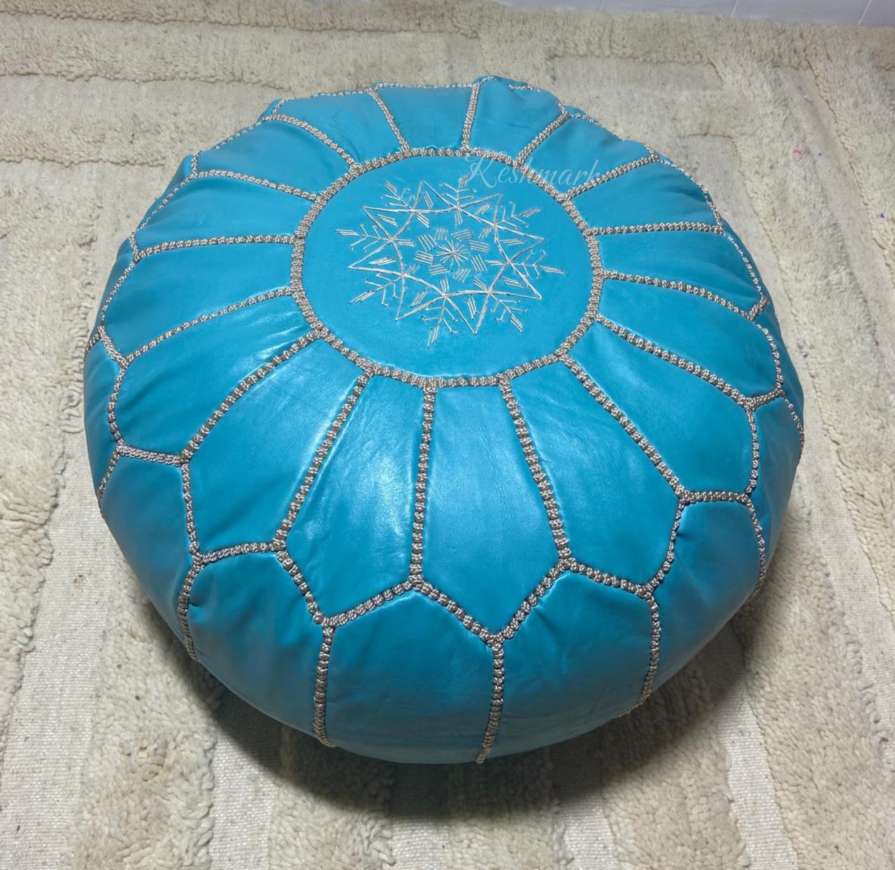 Ottoman footstool leather pouf living room decor, leather pouf ottoman Baby blue leather, handmade furniture, moroccan pouf, Floor Cushion, With Stuffing (Copy)