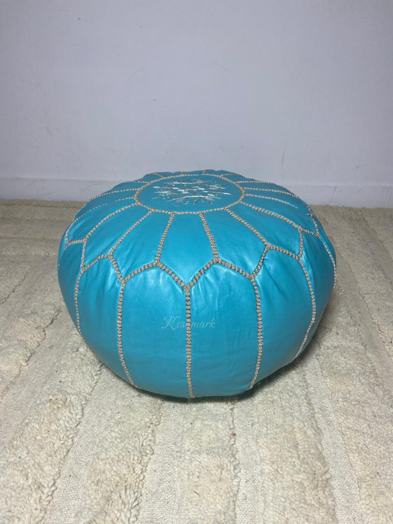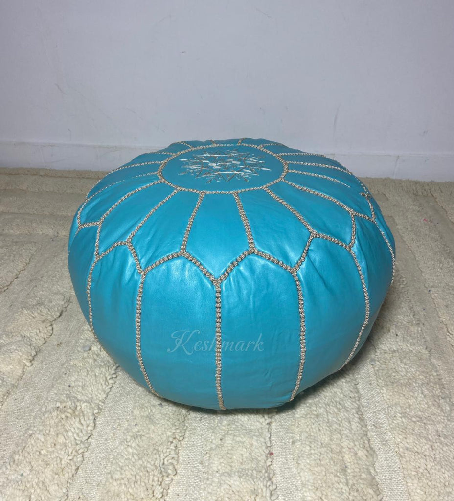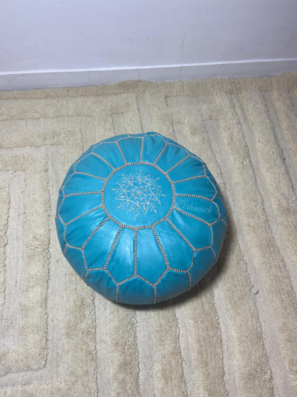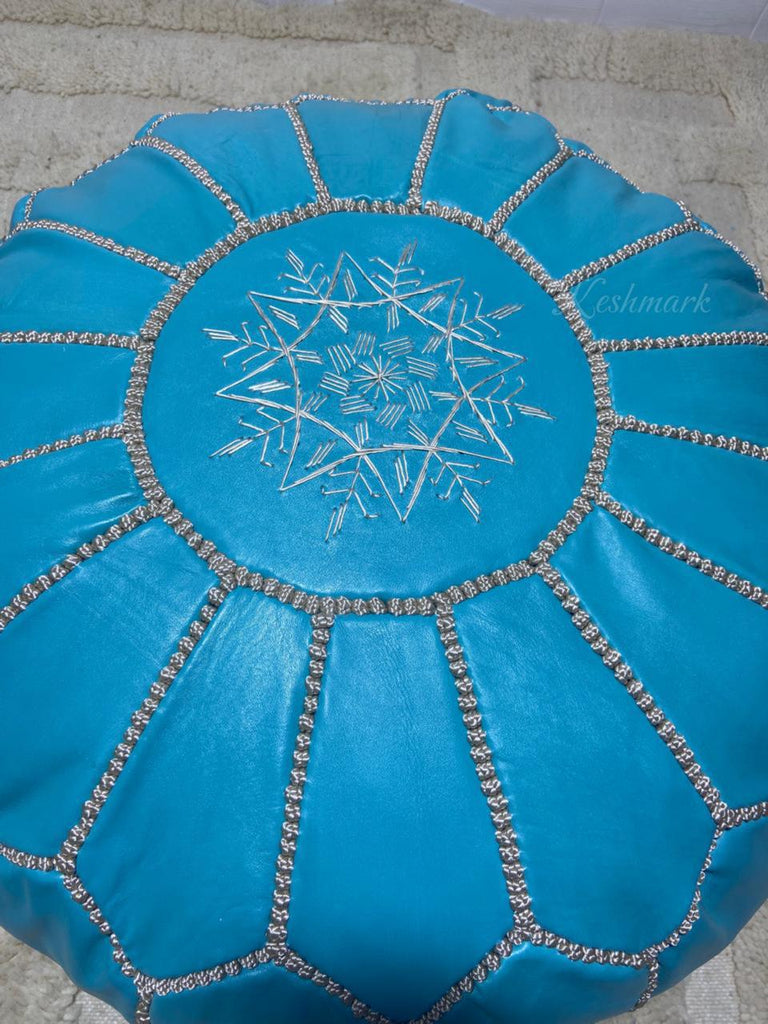 Ottoman footstool leather pouf living room decor, leather pouf ottoman Baby blue leather, handmade furniture, moroccan pouf, Floor Cushion, With Stuffing (Copy)