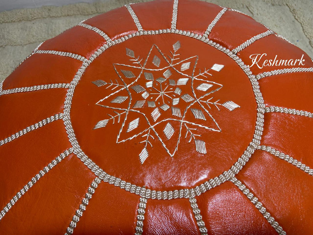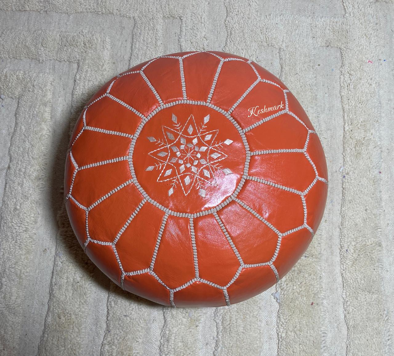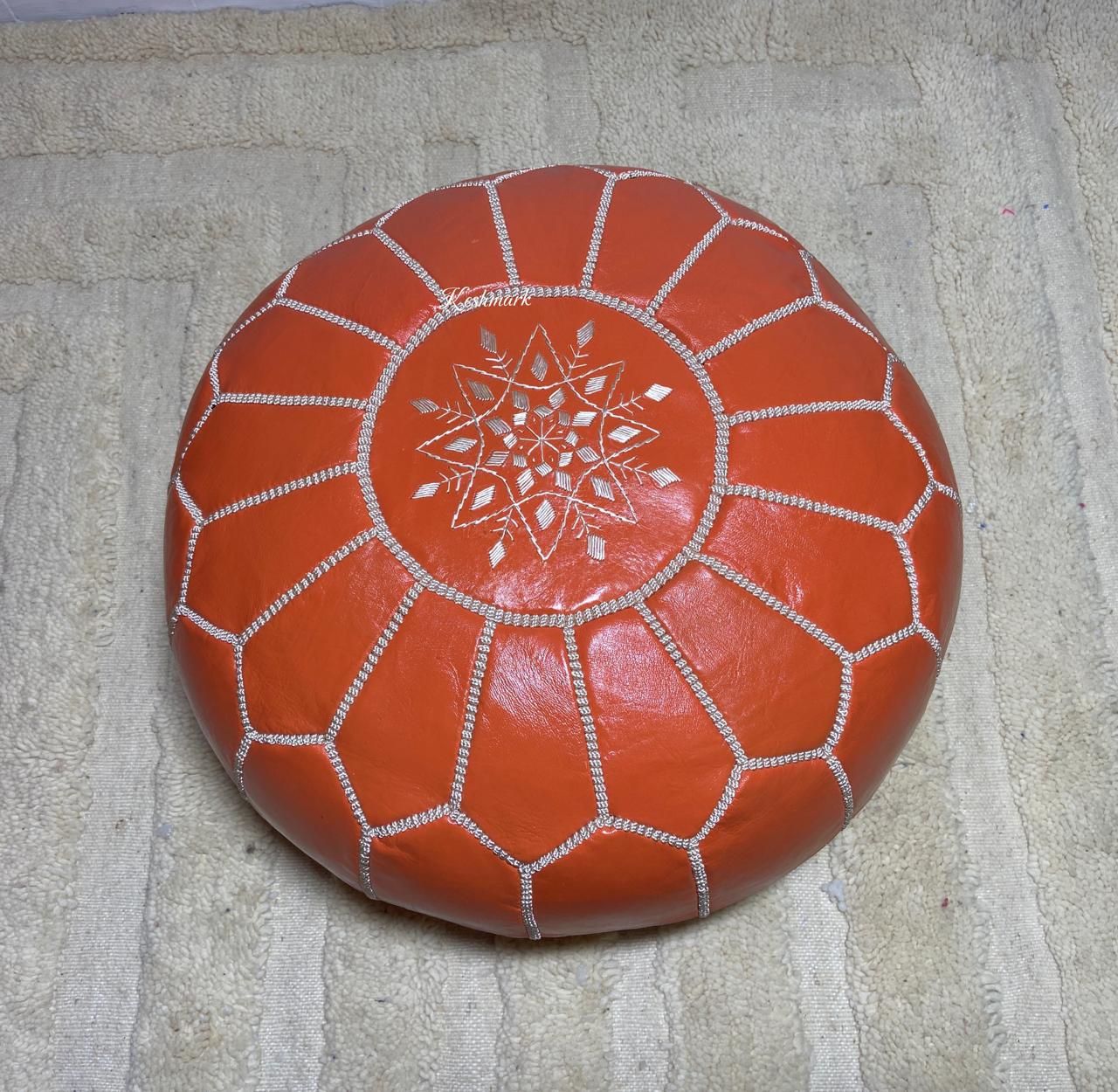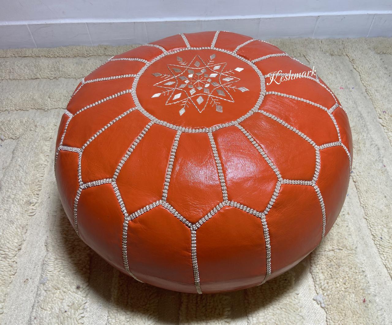 Ottoman footstool leather pouf living room decor, leather pouf ottoman Orange leather, handmade furniture, moroccan pouf, Floor Cushion, With Stuffing