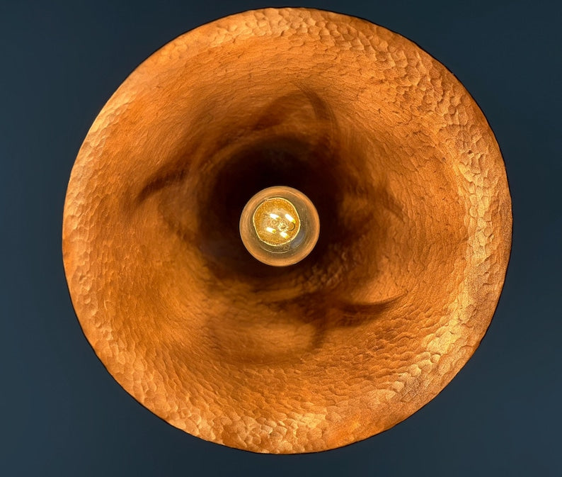 Transform your space with our stunning handcrafted copper dome pendant light, featuring a mesmerizing verdigris patina exterior and warm copper interior. Each light is individually patinated to create a one-of-a-kind piece that tells its own story through the natural oxidation process.